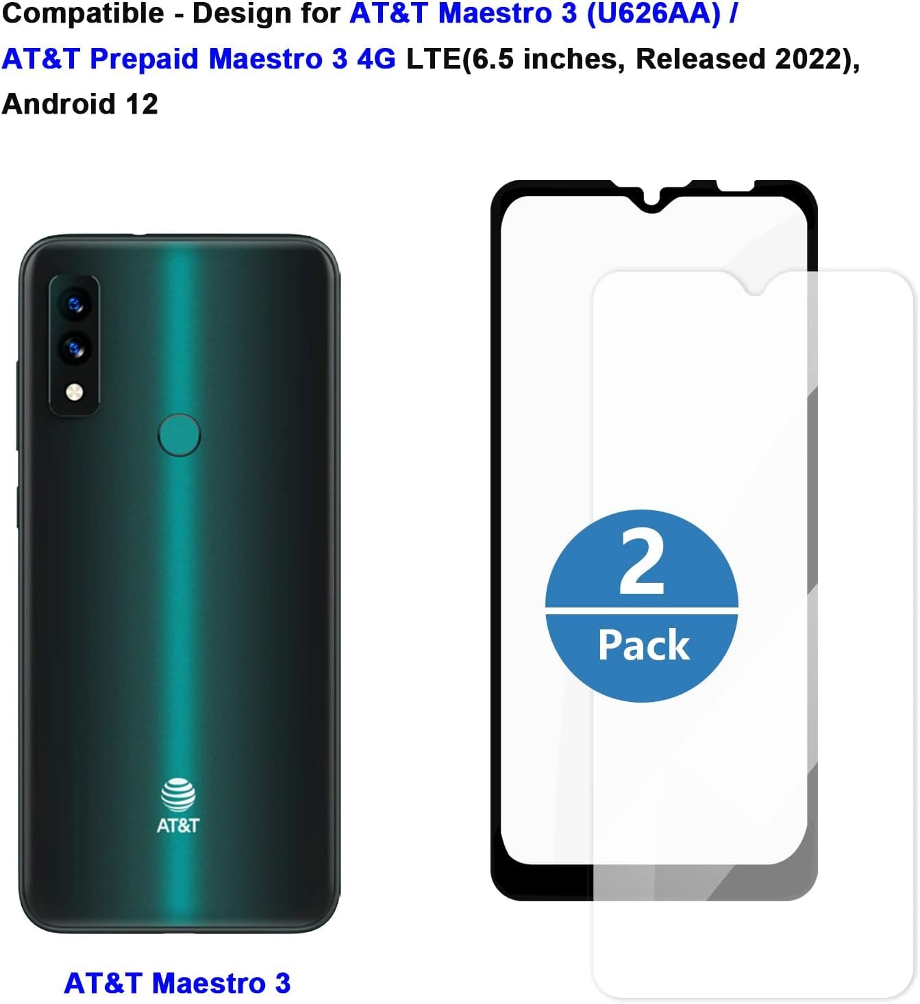 Compatible – Design for AT&T Maestro 3 (U626AA) / AT&T Prepaid Maestro 3 4G LTE(6.5 inches, Released 2022), Android 12. Two different designs of Tempered Glass Screen Protector, provide different touch experience. One Edge to Edge full screen coverage, one covers only the flat part of the screen.