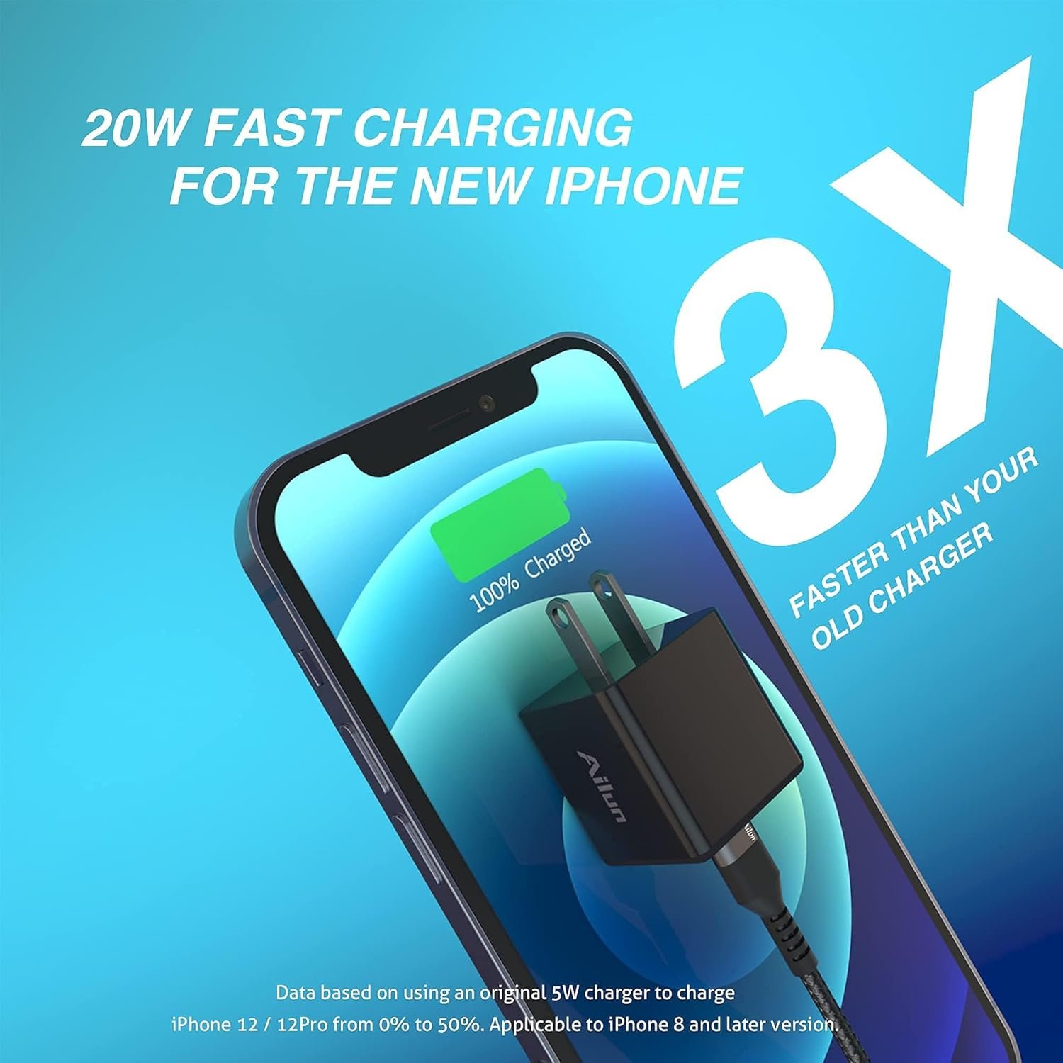 20W PD Port: Fast Charging for iPhone, blazing fast speeds to power up iPhone via the USB C output port, efficiently from 0% to 50% battery in only 30 minutes, 3X faster than your old charger,saving you plenty of time