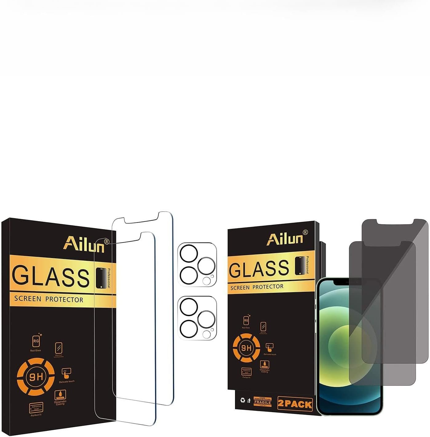 Ailun 2Pack Screen Protector Compatible for iPhone 12 Pro[6.1 inch] + 2 Pack Camera Lens Protector and Privacy Screen Protector Compatible for iPhone 12/iPhone 12 pro 2020 6.1 Inch 2 Pack