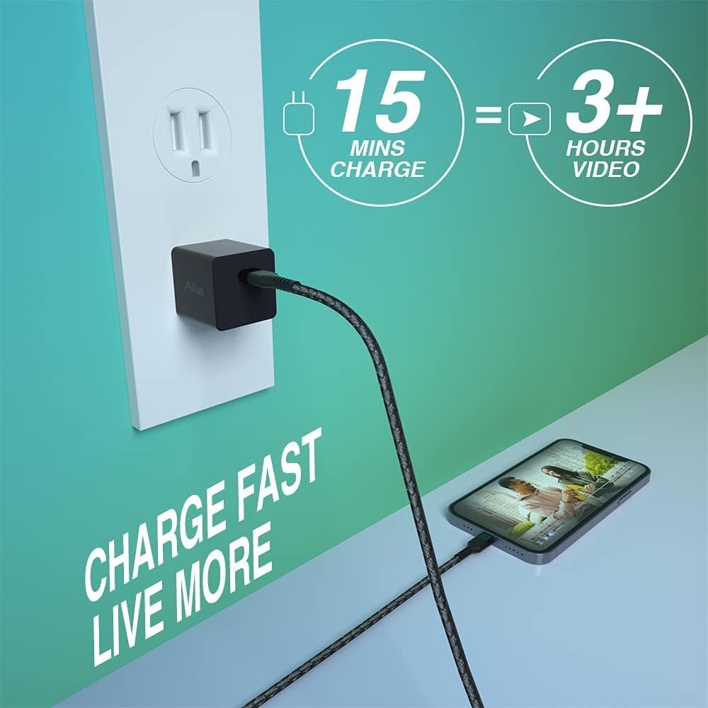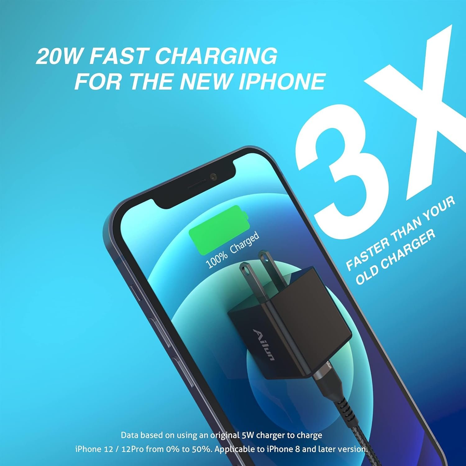 20W PD Port: Fast Charging for iPhone, support 5V/9V/12V fast charging,blazing fast speeds to power up iPhone via the USB C output port, efficiently from 0% to 50% battery in only 30 minutes, 3X faster than your old charger,saving you plenty of time