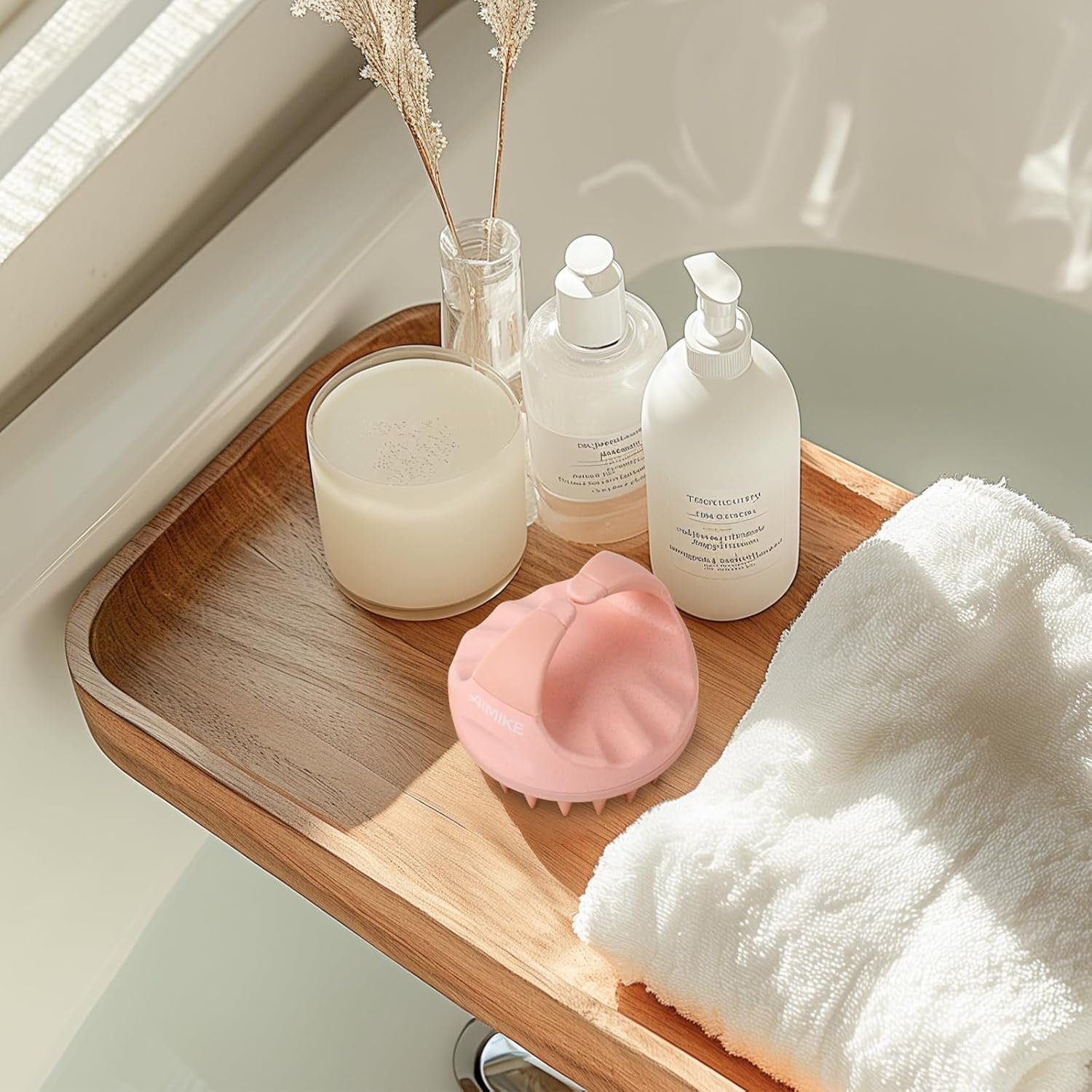 AIMIKE Shampoo Brush: Our scalp massager bristles are made of soft silicone to protect your scalp. The rest is crafted from wheat straw, a by-product of wheat production, which is a zero-waste material, no harm to human body