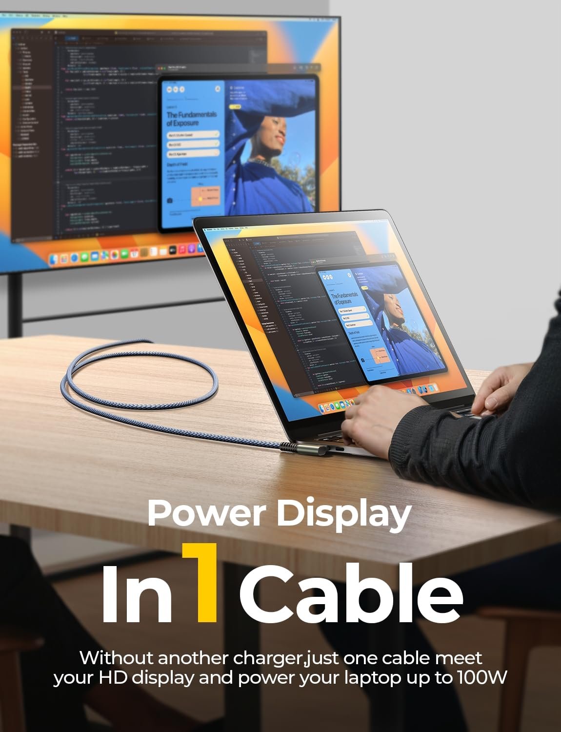 ⚡4K@60Hz HD Video Output: AINOPE usb c display cable supports Thunderbolt 4/3 port and 4K@60Hz HD video output from laptops to USB C display screen or monitor.It can help you enjoy the visual feast freely.Besides, This usb c monitor cable are widely compatible with type c devices and fit Samsung, MacBook Pro, HP EliteDisplay, Dell USB-C Monitors, LG 4k USB-C monitor and more.