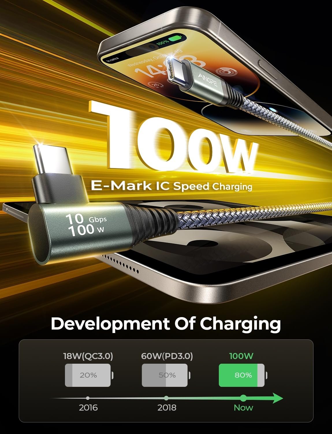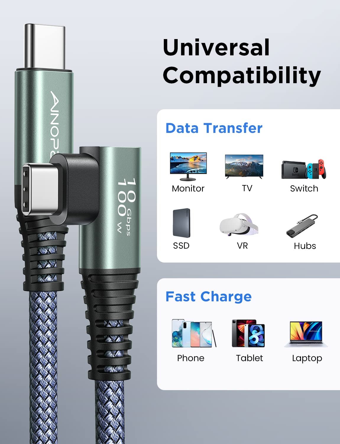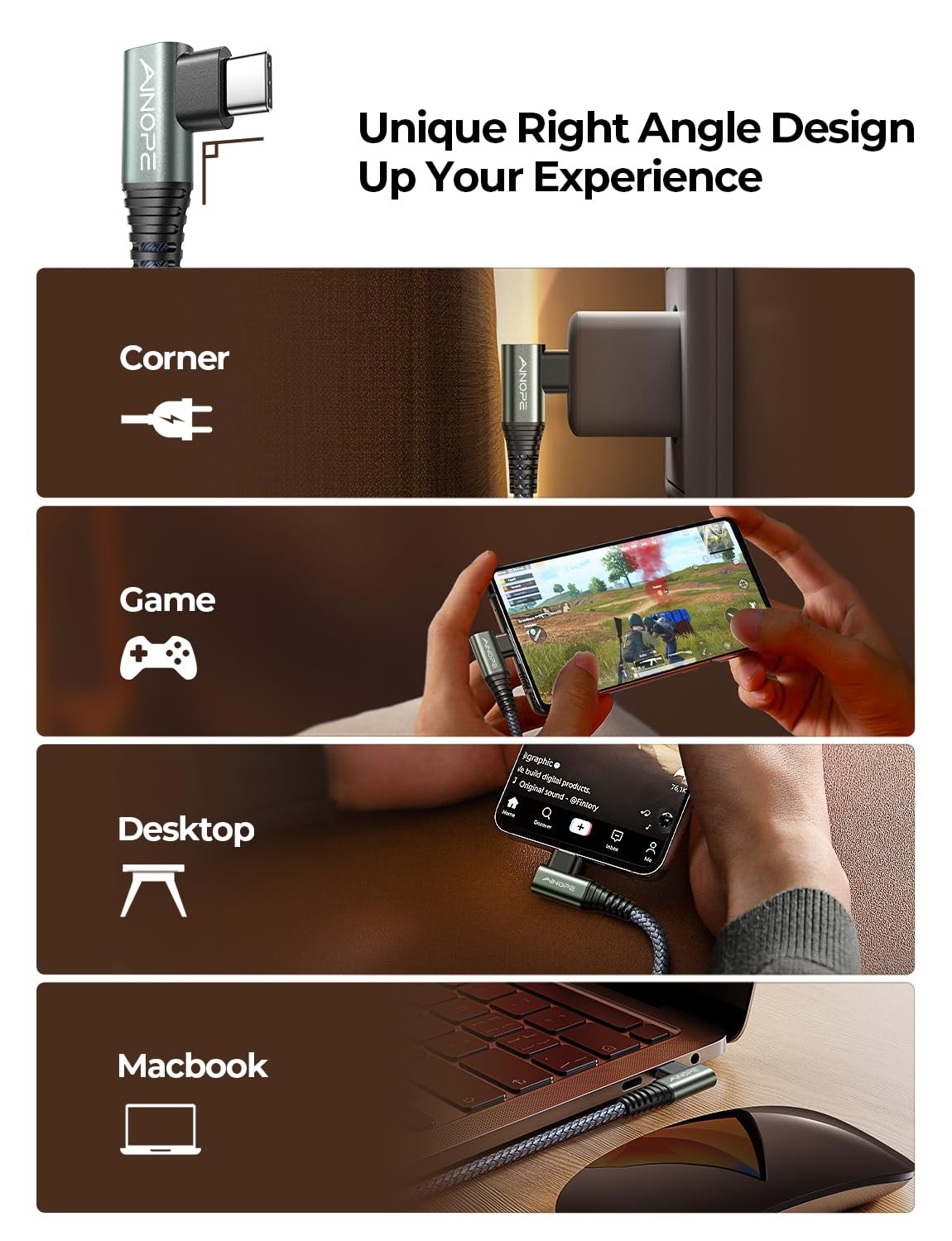 ⚡2023 Latest Version USB C to USB C 3.2 Gen 2 Cable:4 reason to choose AINOPE usb c to usb c cable? ①Thisiphone 15 usb c data transfer cable is capable of meeting your ultra-fast data transfer needs.②It can achieve 4K@60Hz HD video output.③In addition, this USB C 3.0 Cable also has a faster than normal data cable with 100w ultra fast charging.④Thoughtful and exclusive right angle design for a super comfortable experience.