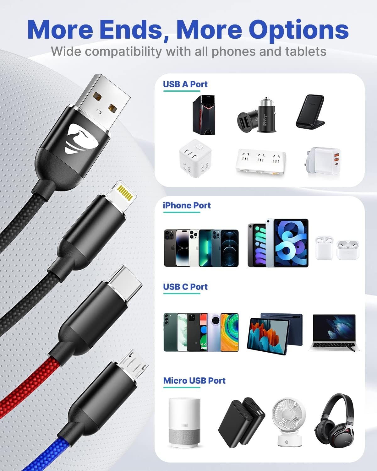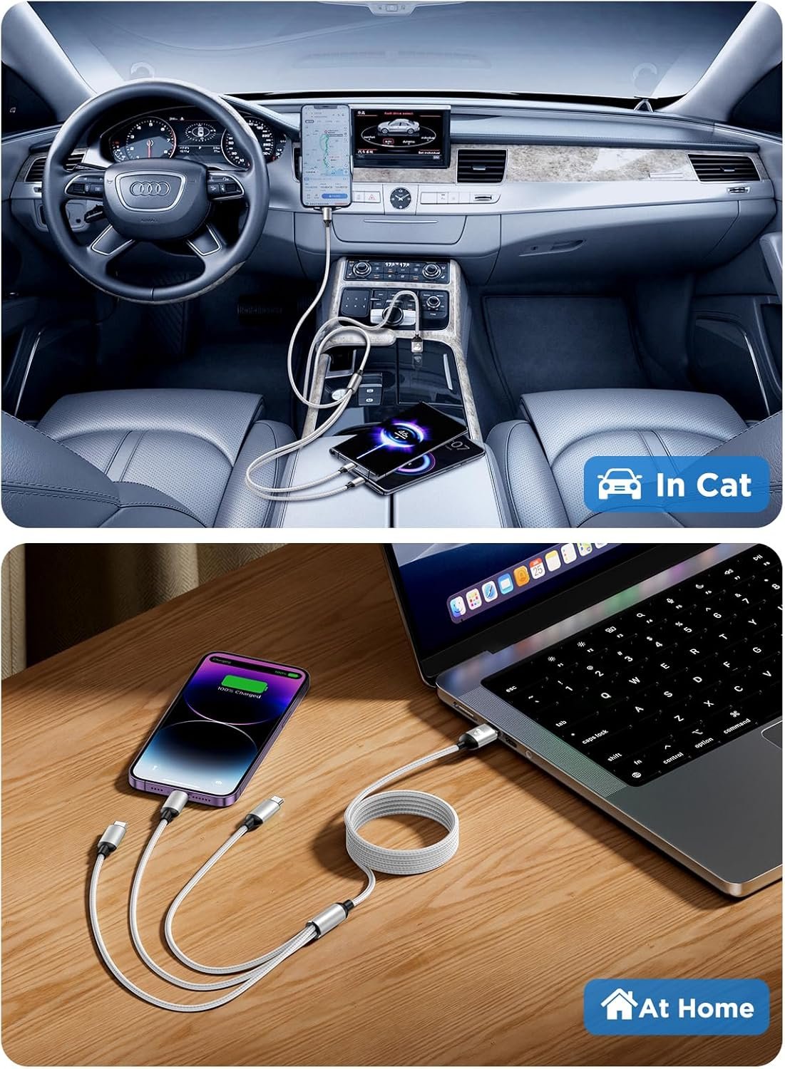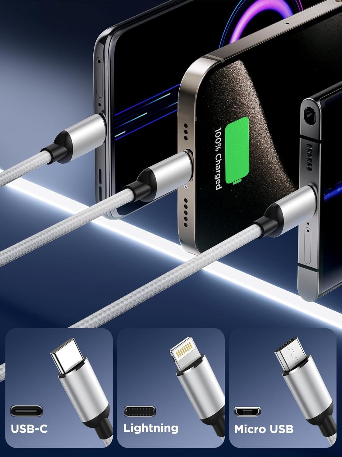 Unique 3-in-1 charging cord brings you convenience and sharing feeling, buy one charger cable = 3 cables, the universal charger supports charging all cell phones on the market. Carry just one multi charging cable to charge all your devices when you’re traveling. A must have for Uber and Lyft bike sharing.