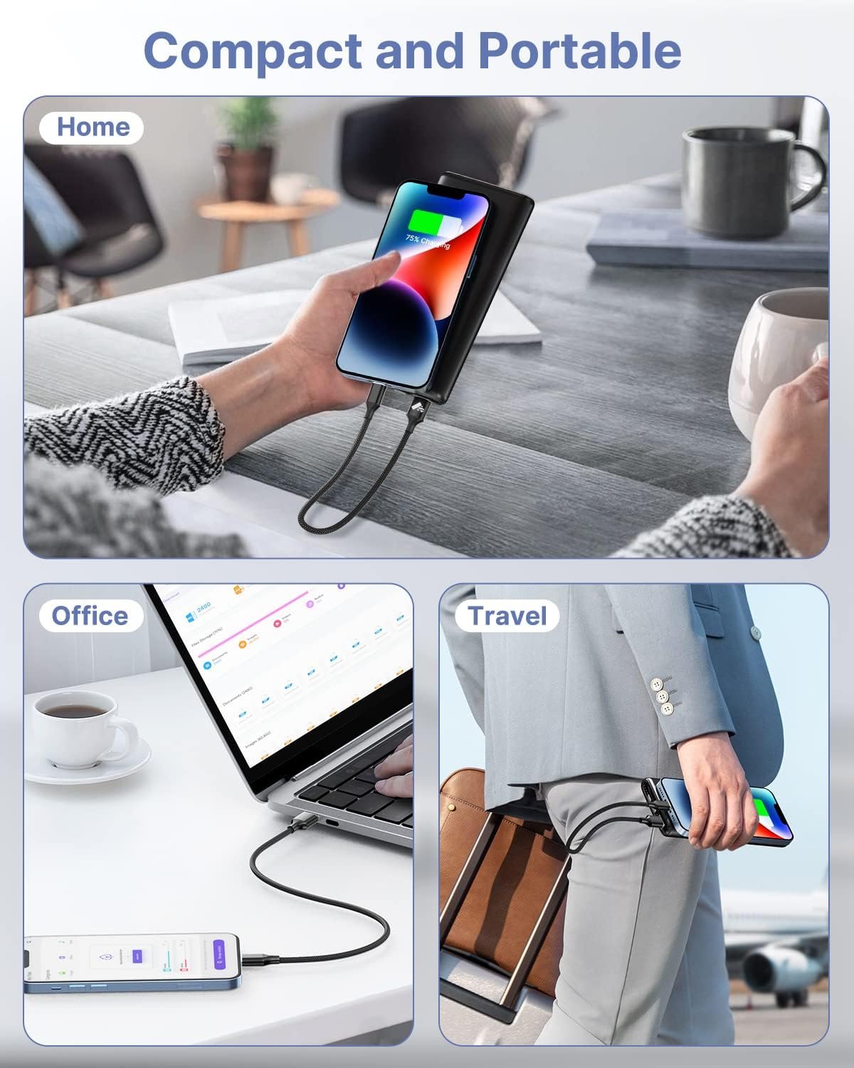 2 Pack 1 ft Short Cable is a good partner for your power bank, you can easily carry it at any time.