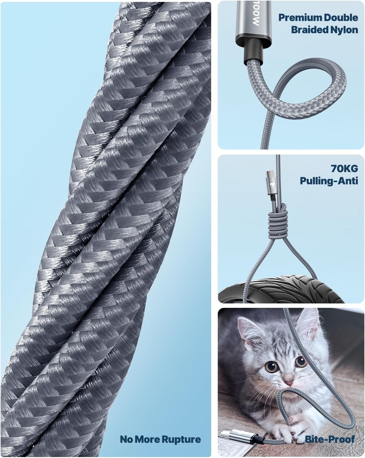 Superior Durability:Type C to Type C Cable Nylon Braided fast charging cable protect the charging port of your valuable device from damage, USB C to USB C cable Built-in laser welding technology, which ensure the metal part won’t break; USB C to C Cable coated with premium Nylon Braided, Lasts 30x longer than ordinary usb c to c cable, proven in a laboratory environment to withstand 48,000 bends, adding surprisingly flexibility