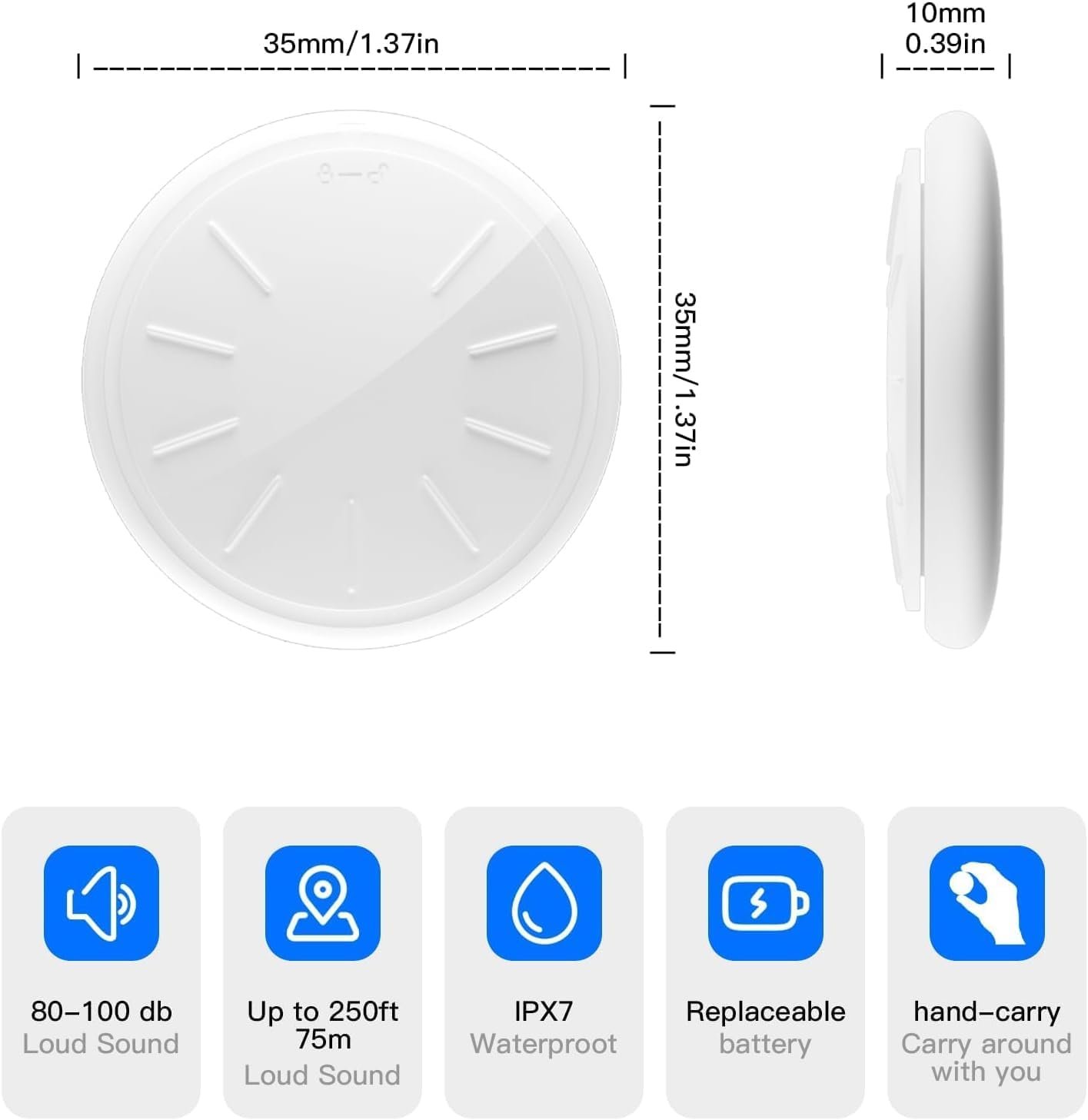 【Track Easily & Pinpoint Accuracy】: You can track the location of personal items such as keys, wallets, backpacks, or suitcases by Find My App. Use the built-in speaker to make the item emit a loud alert sound within range, or view its precise location on the map in the application. (Please upgrade your phone to the latest iOS version iOS18.)