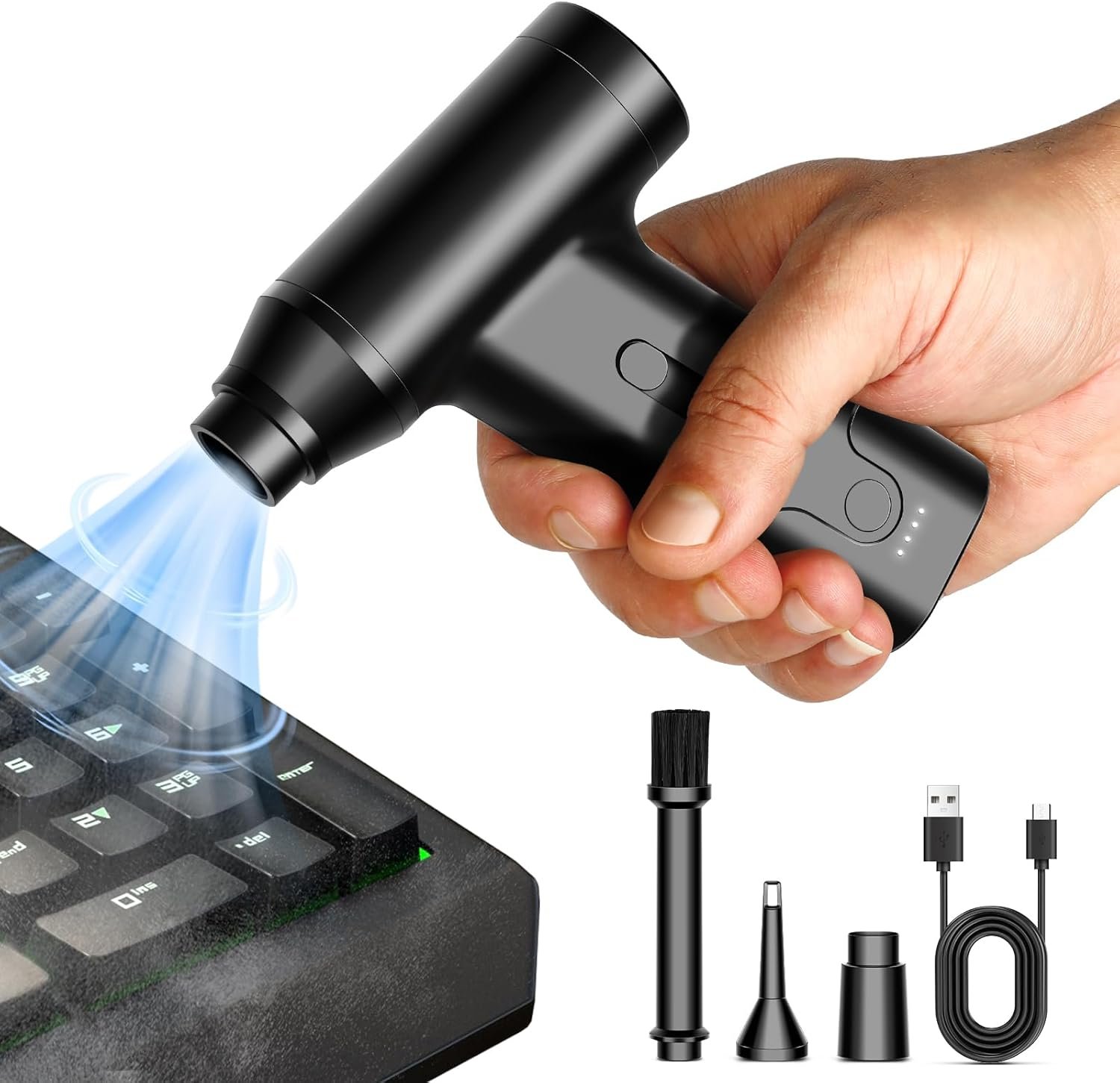 Powerful Turbo Air Duster: The Fulljion compressed air duster has a maximum speed of 110000RPM, stepless speed control, and strong performance. It can easily remove dirt hidden in various crevices on the keyboard or any electronic device, making it very convenient to use at home, in the office, or in the car. It is a great dust removal tool.