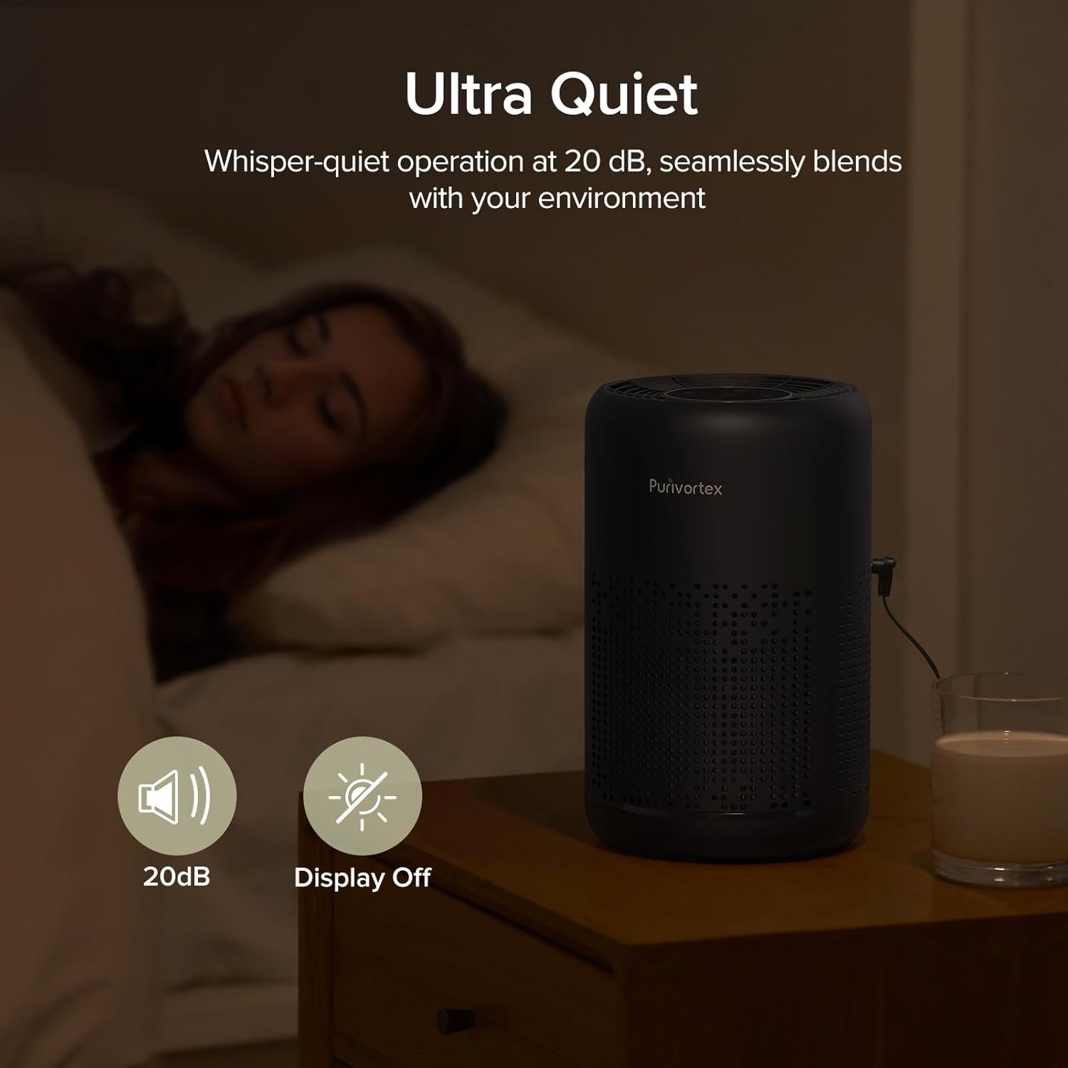 Whisper-Quiet Operation: Experience peace and tranquility with whisper-quiet operation as low as 20dB. This air purifier allows you to enjoy a quiet and undisturbed environment, making it ideal for bedrooms, offices, and nurseries