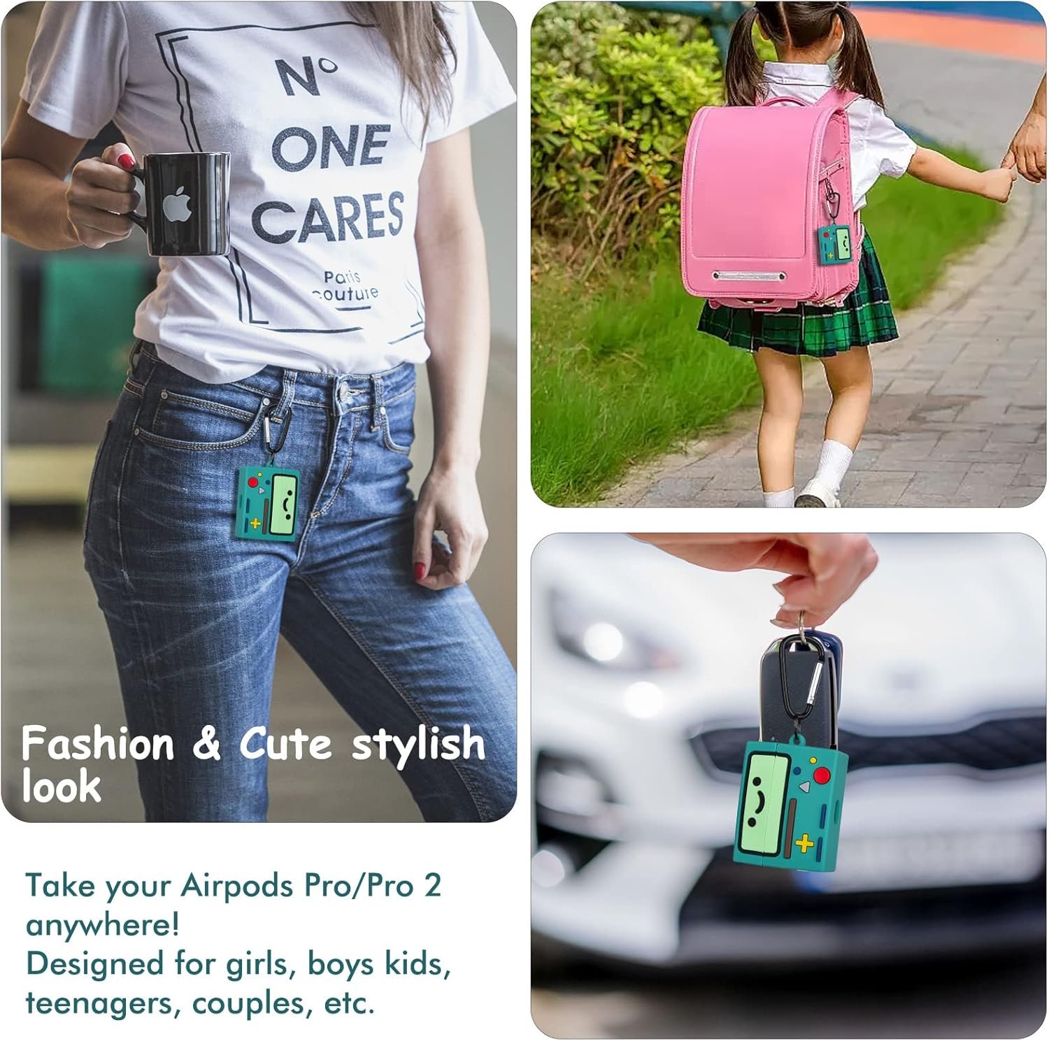 【PACKAGE INCLUDED】1* AirPods Pro 2nd/1st Generation Case, 1* Metal Carabiner, 1* Small Steel Ring. Please note that AirPods Pro are not included. It’s a pretty gift for your friend, children and other family when Christmas, New Year, Birthdays, Thanksgiving is coming.