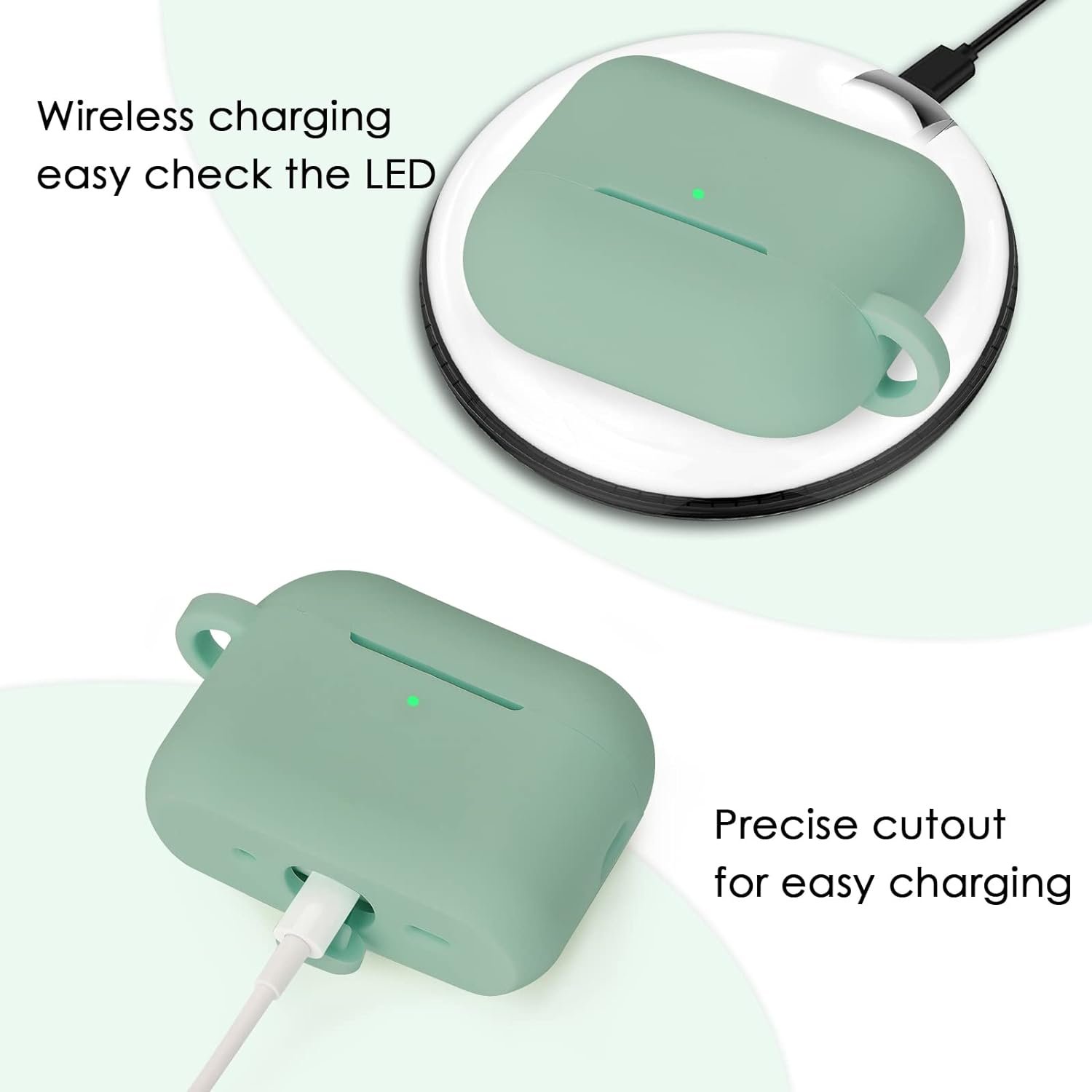 Wireless charging – Support convenient wireless charging, front led light visible. The bottom opening port design supports regular charging without remove the air pod pro case.