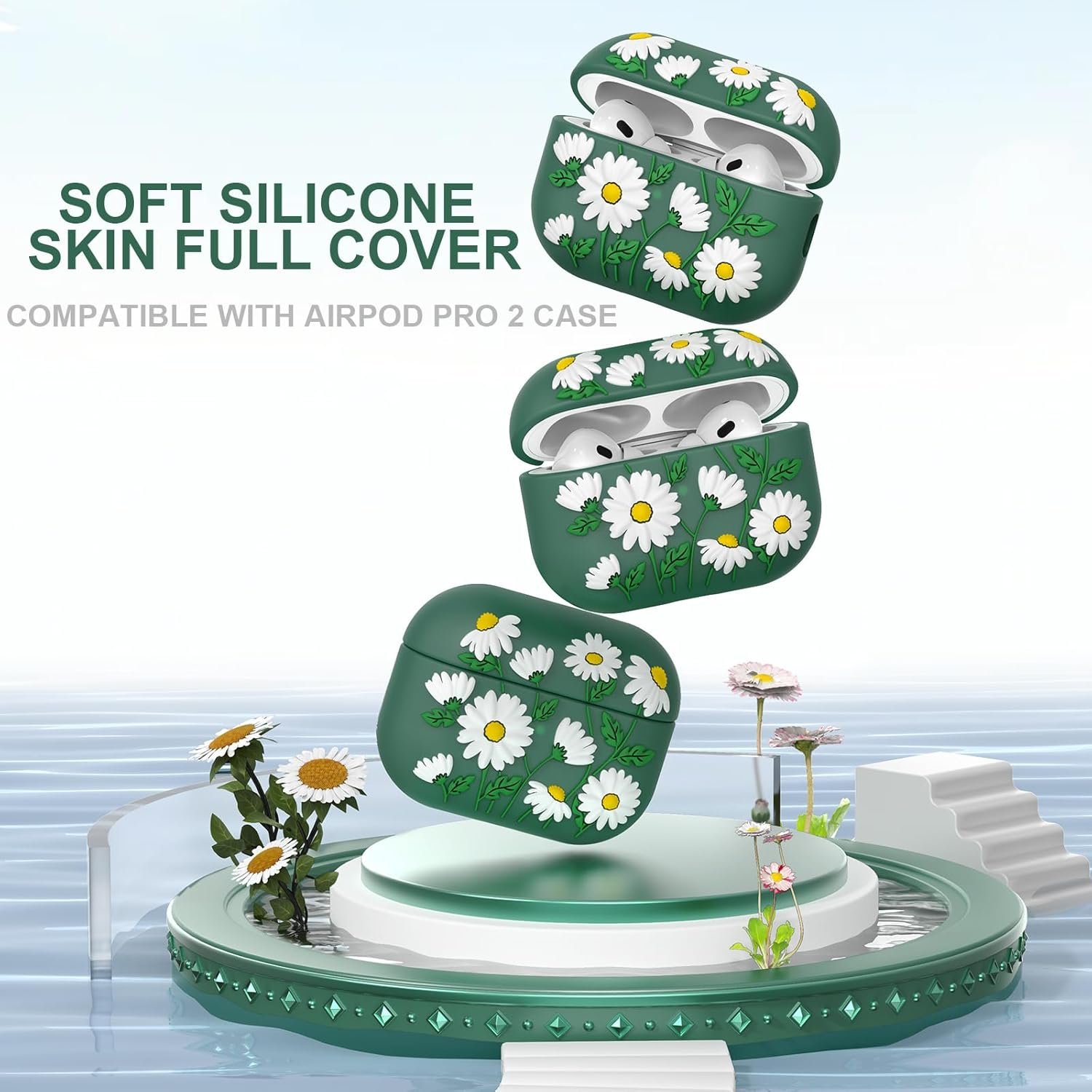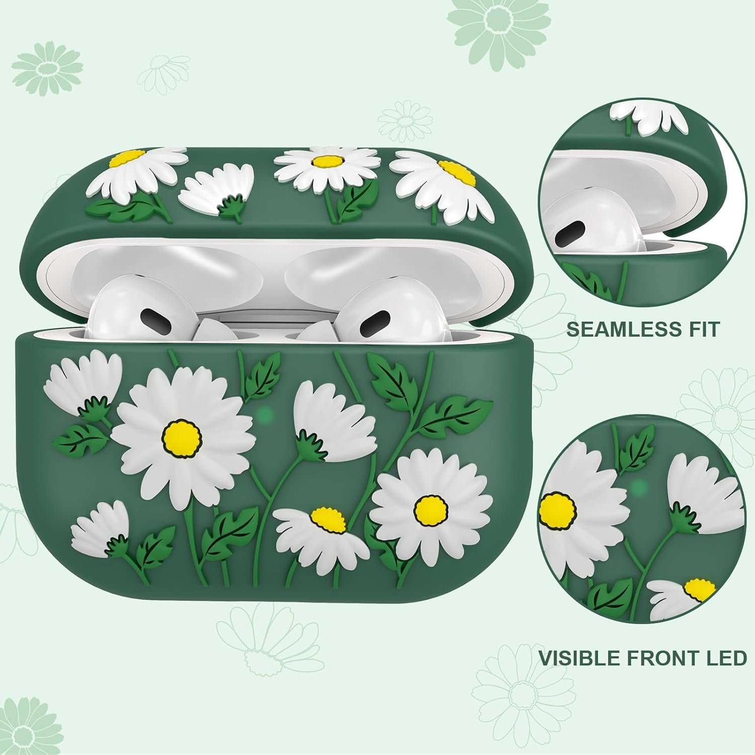 🌼【Embossed Floral Pattern Design】Airpod pro 2nd gen case features a delicate, vivid, and blossoming daisy-themed design that recalls images of everything coming back to life and springtime! The engraved flower design adds a unique and artistic flair to your AirPods pro 2 cases, making it a perfect accessory for any occasion.