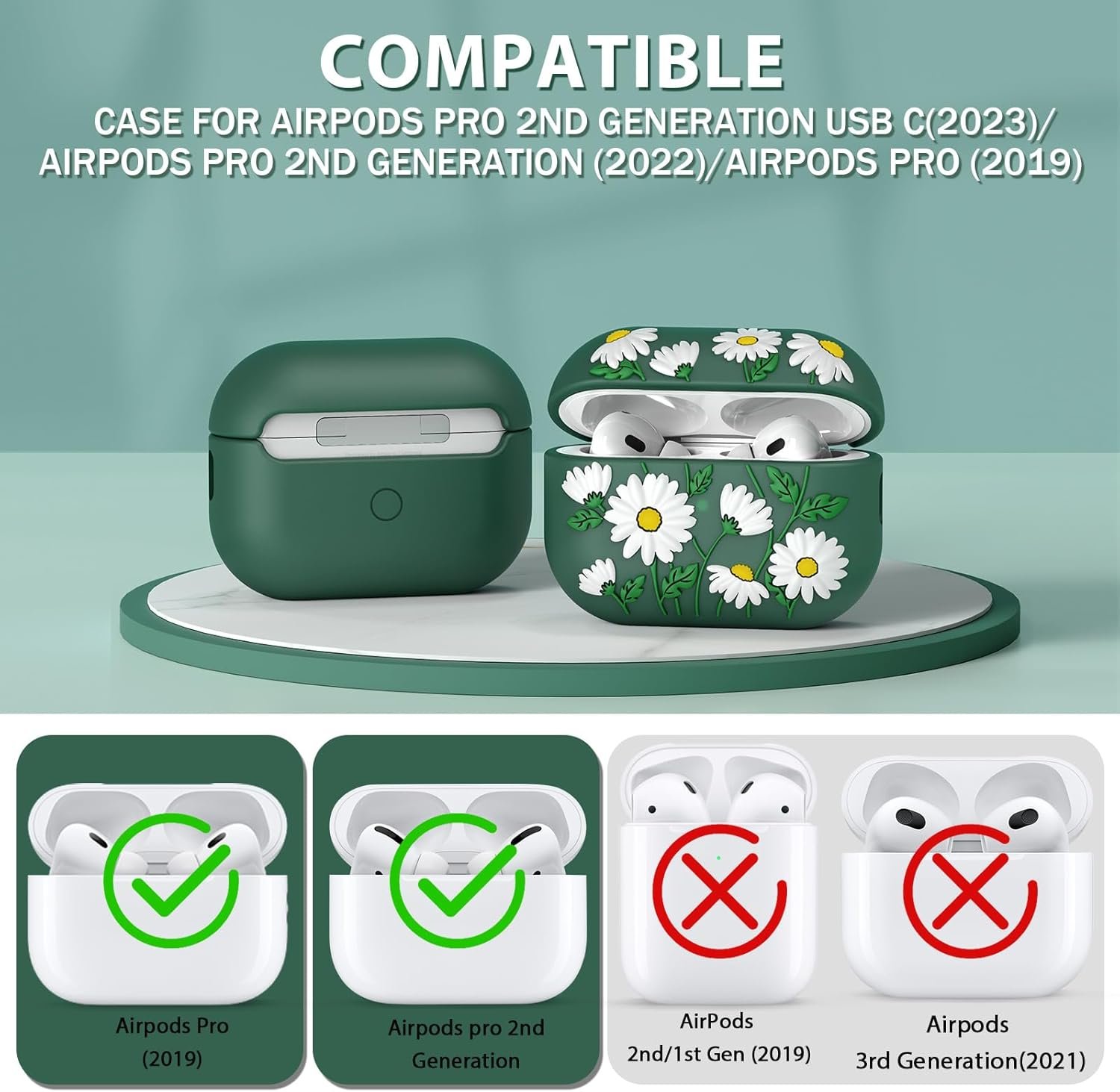🌼【Designed for Airpods Pro 2】Only compatible for Apple AirPods Pro Case 2nd Generation (2023 Release with USB-C charging port / 2022 Release) and AirPods Pro 1st generation Charging Case ( 2019 Release).