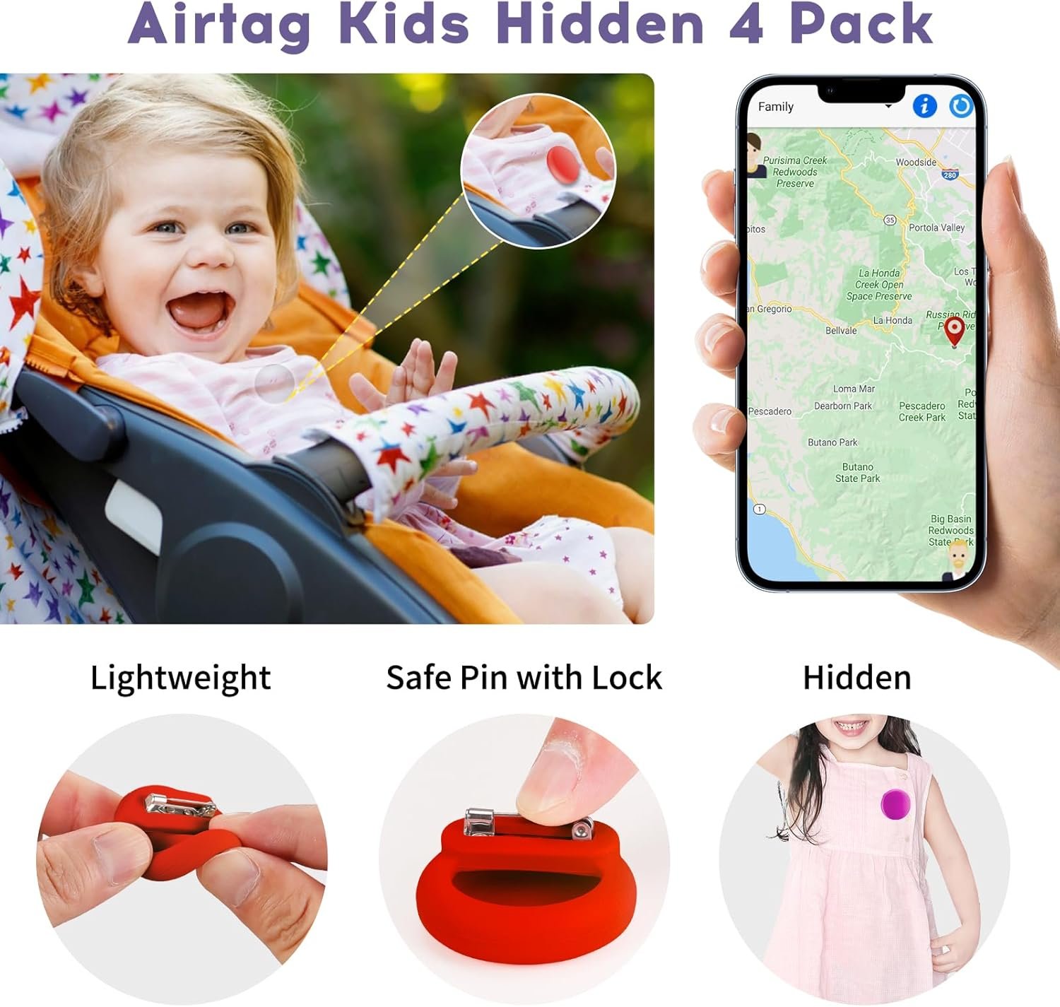 SECURE, DISCREET PROTECTION: The invisible safety pin firmly secures the AirTag holder to clothes, shoes, backpacks, and luggage, ensuring your AirTag remains hidden and safe from accidental drops.(Not recommended for children under 3 or direct attachment to undergarments.)