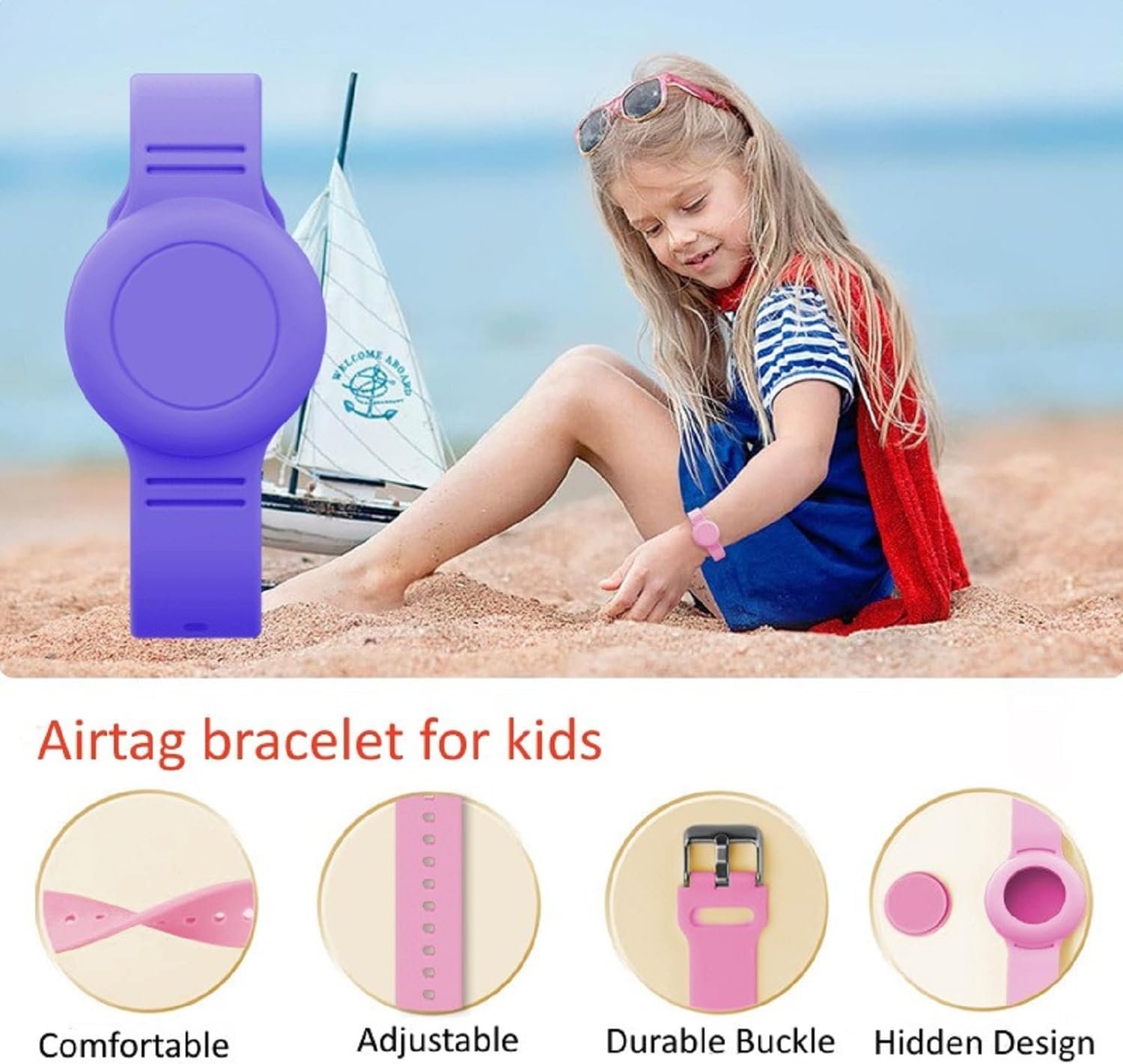 Waterproof Airtag holder for Kids: It is with a full-coverage design that can protect the Airtag well. This upgraded design achieves better water resistance, such as swimming pool, beach etc. Kids can play happily.