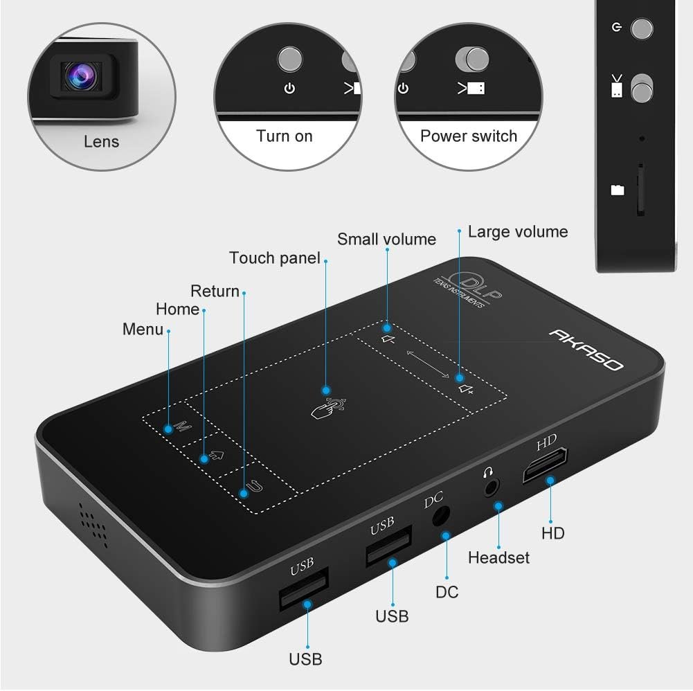 AKASO WT50 Mini Pocket Pico Projector, 1080P Movie Video DLP Portable Projector with Android OS, Built-in Battery WiFi & Bluetooth, Projector for Cookie Decorating, Connects to iPhone and Android