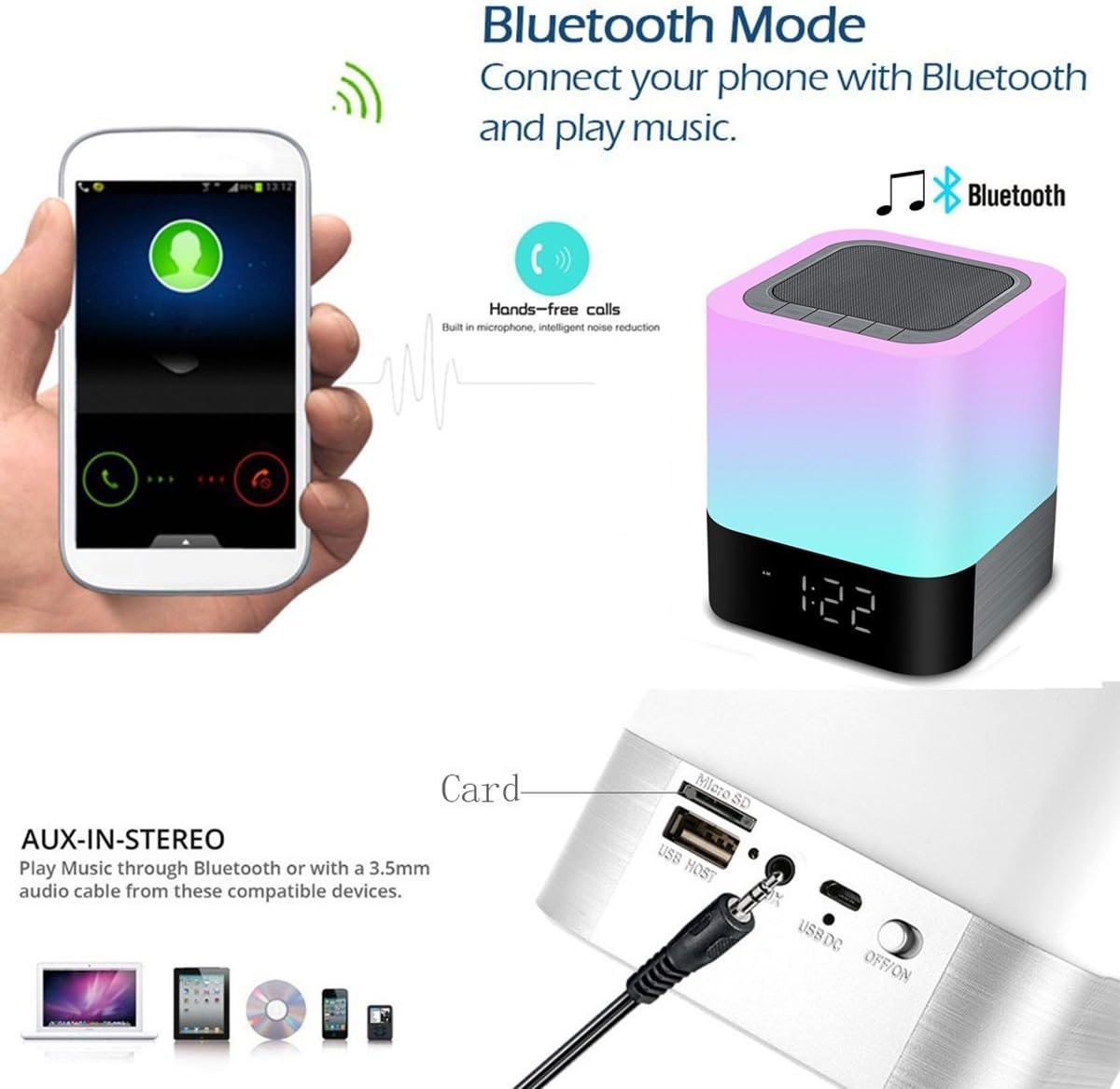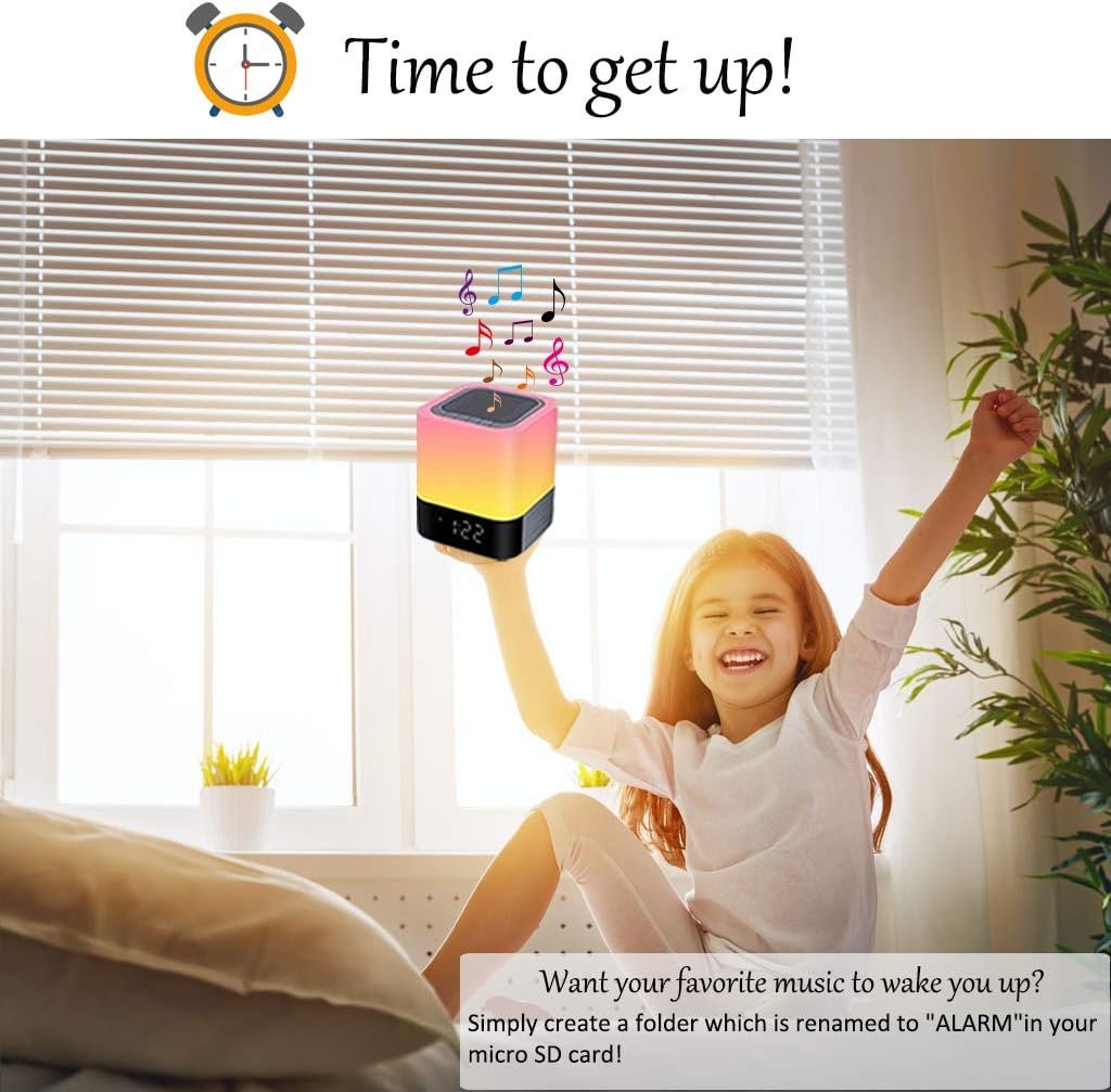 Alarm Clock Bluetooth Speaker Night Light Bluetooth Speaker,Touch Sensor Bedside Lamp,Dimmable Warm Light & Color Changing RGB LED Table Lamp MP3 Music Player for Kids, Gifts for Teen Girls Boys Women