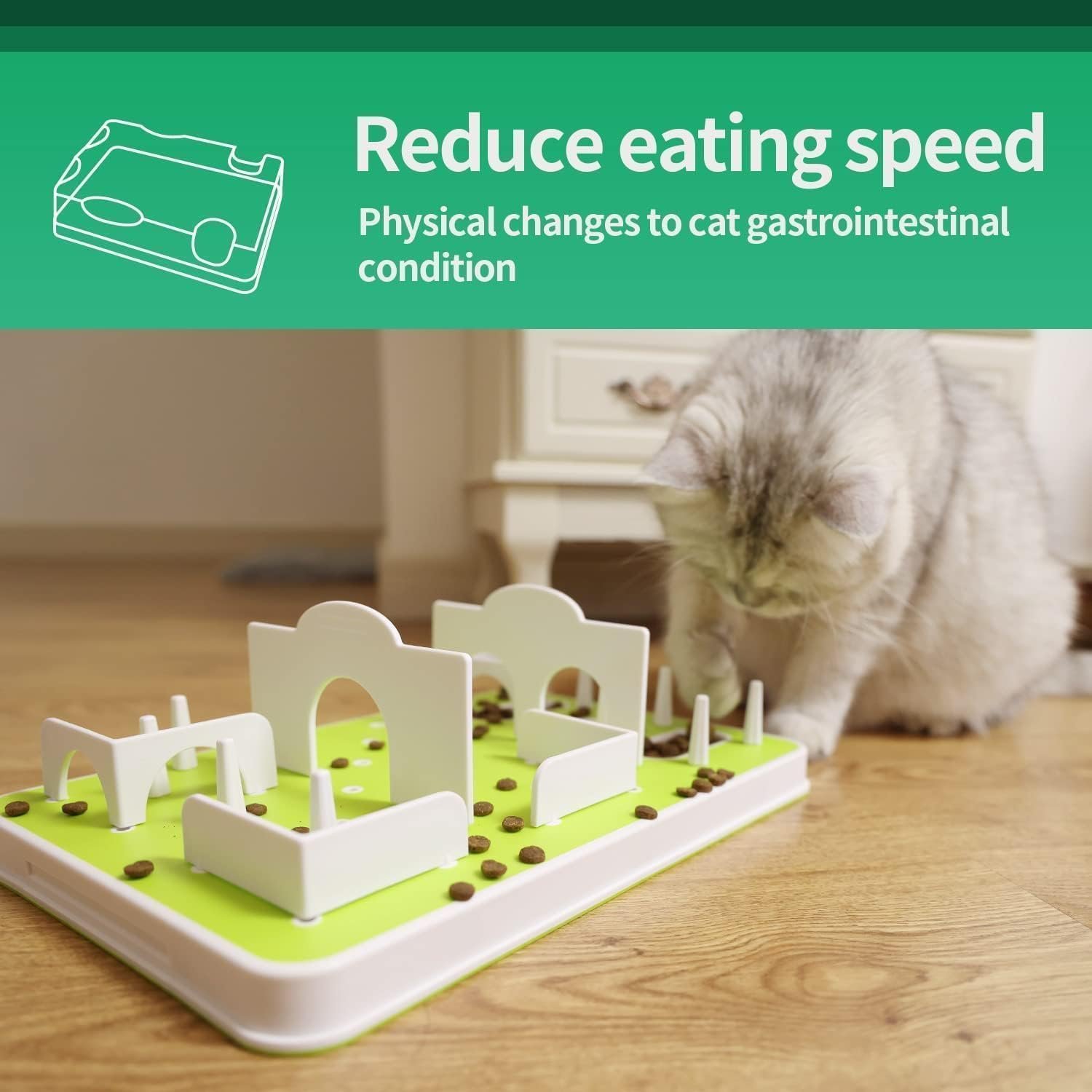 Help Slow Eating:The cat maze doubles as an effective treat dispenser, making it a valuable tool for cats that eat too quickly. By requiring your cat to work through the puzzle to access their treats, it naturally slows down their eating pace, promoting healthier digestion and reducing the risk of overeating. This treat puzzle mimics the natural hunting behavior of cats, where they must exert effort to obtain their food, thereby enhancing their overall eating experience.