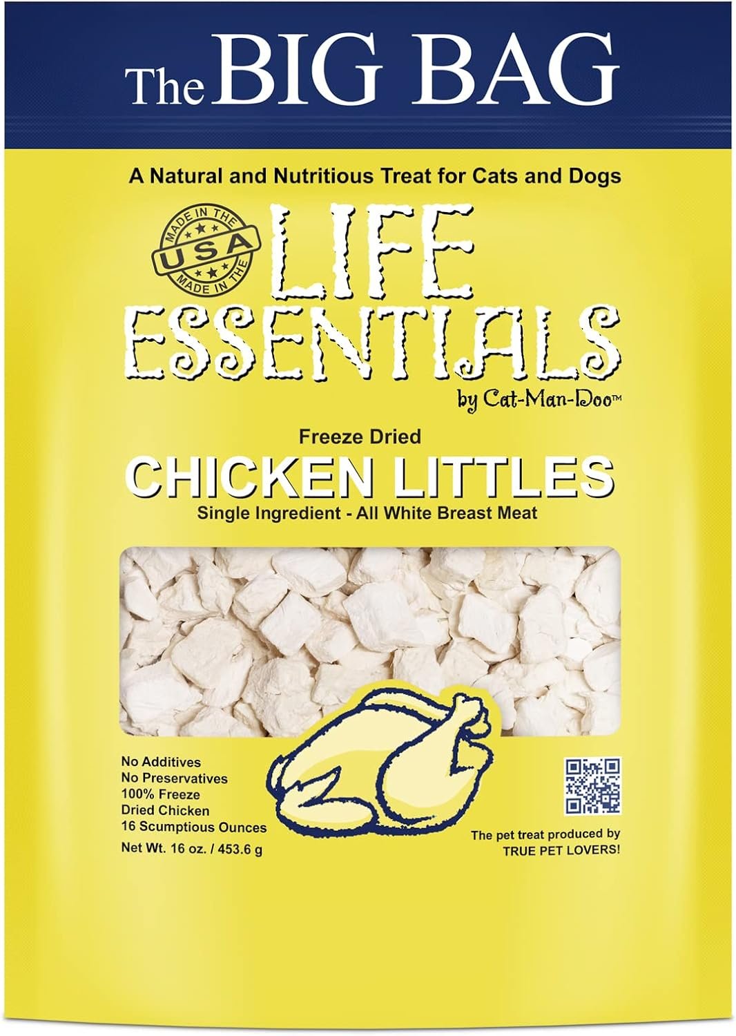 All Natural Freeze Dried Chicken/Chicken Littles Pet Treats for Dogs & Cats – No Fillers, Preservatives, or Additives – A No Grain Tasty Treat -1 Lb Big Bag – Made in USA