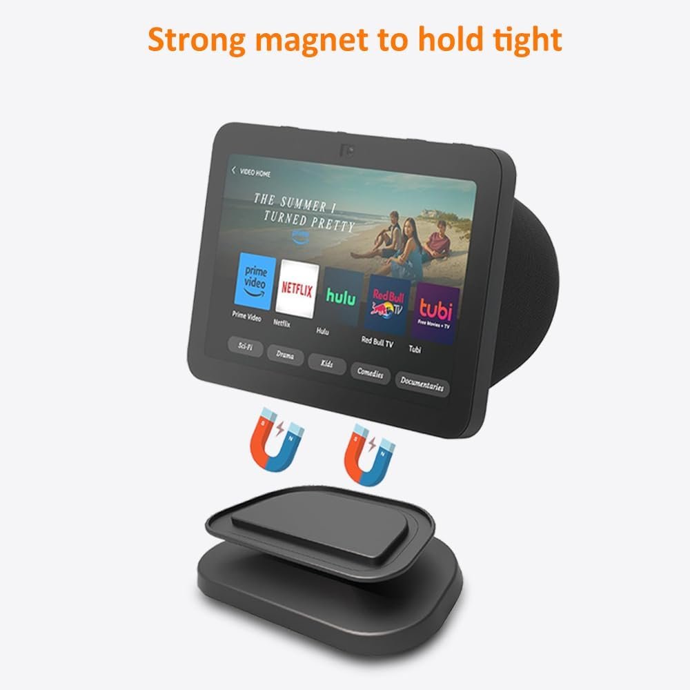 It will hold your Show 8 tight with the built-in magnet, and you can move the stand around to find your desired position and get a better viewing angle, huge increase in versatility.