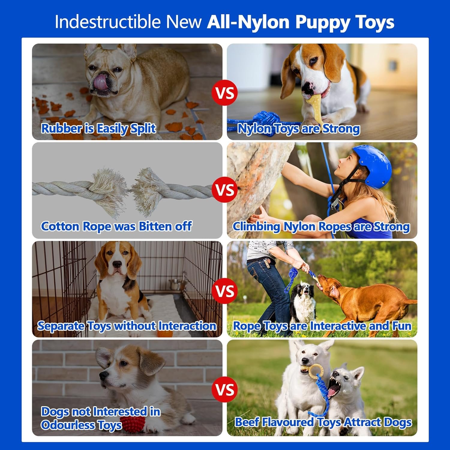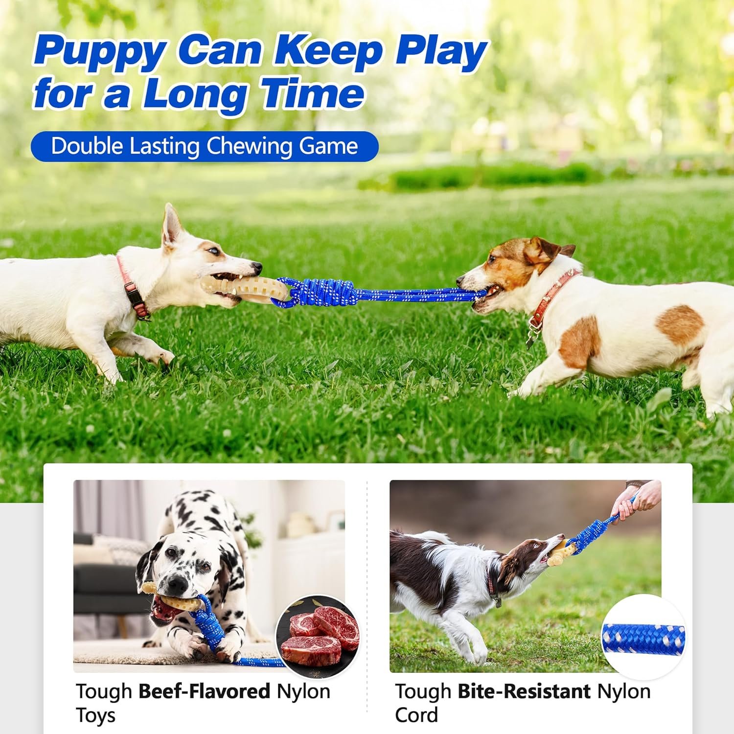 【Fun Nylon Puppy Toy Enjoy Enriching Tug of War Games】Tough nylon rope chew toys for puppies relieves puppy itching during teething,puppy rope toys come in different lengths of interactive rope,Encourages your puppy to chase,pull and run,puppy toys for teething keeping your dog physically and mentally healthy as he grows.