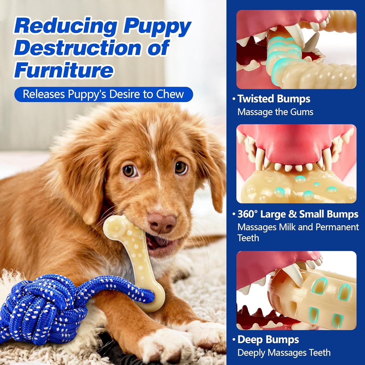 【Multi-Textured Puppy Chew Toys for Teething Comfort】Nylon puppy teething rings include a variety of chewing textures to ease teething pain,Puppy teething toy twist texture massages gums,Puppy toy 360°large and small bumps accommodate different teething stages,Dog teething toys peanut butter texture distracts puppies from teething discomfort.