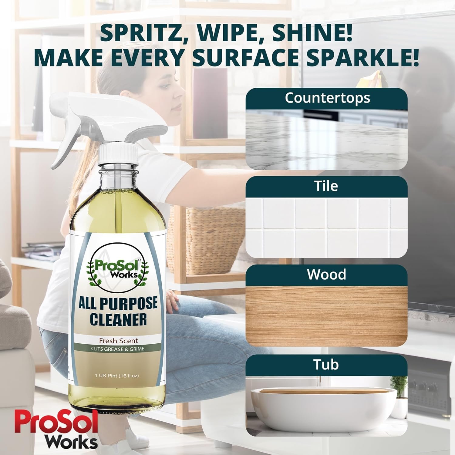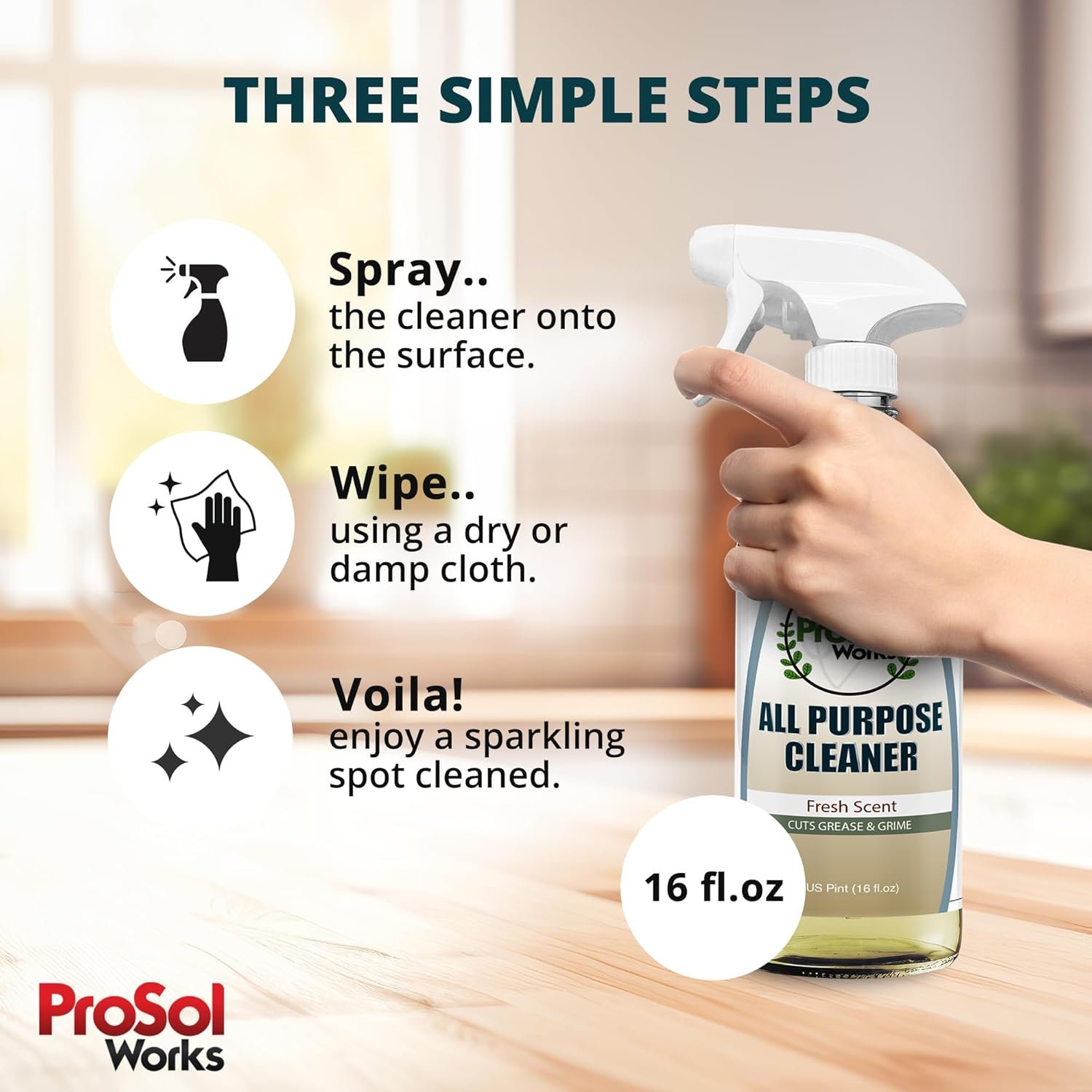 Prosol Works All Purpose Cleaner is designed with mild, pleasant scents, eliminating the overpowering odors commonly associated with cleaning agents.