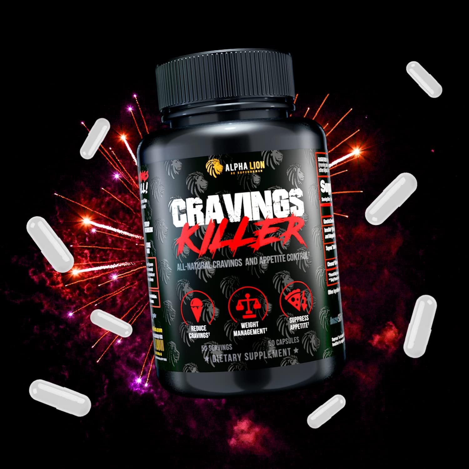 Alpha Lion Cravings Killer Supplement with Saffron Extract & Garcinia Cambogia Extract for Metabolism & Diet Support, Helps Control Hunger & More (50 Capsules)