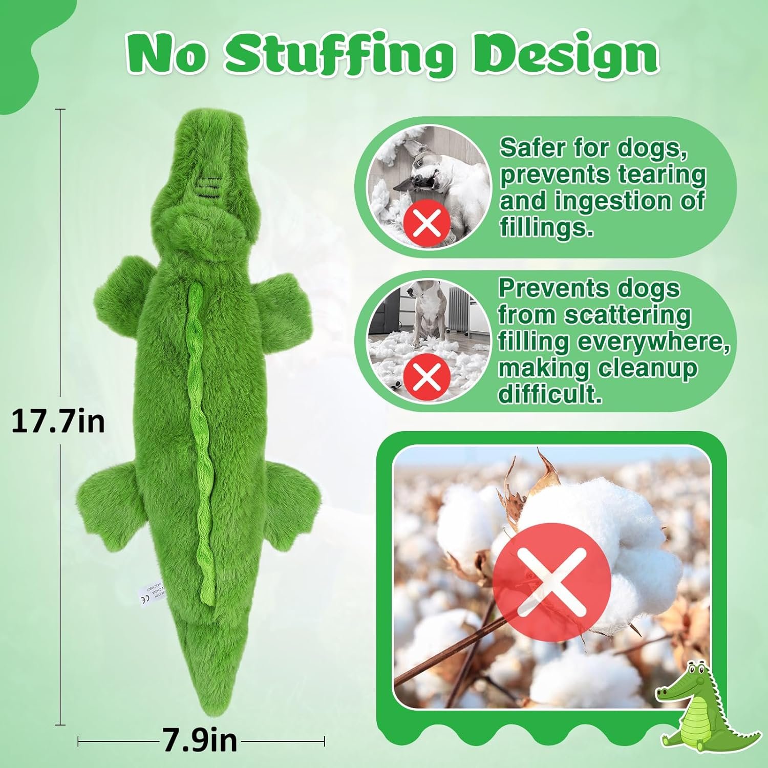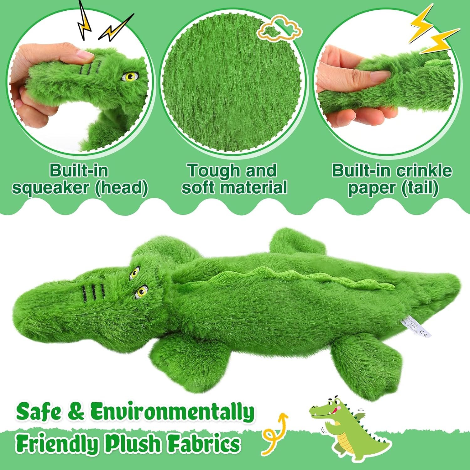 Cute Appearance: Featuring an adorable crocodile image that is vivid and lifelike, our dog toys are sure to capture your dog’s attention. They’ll love the charming design, making playtime more enjoyable for your furry friend.