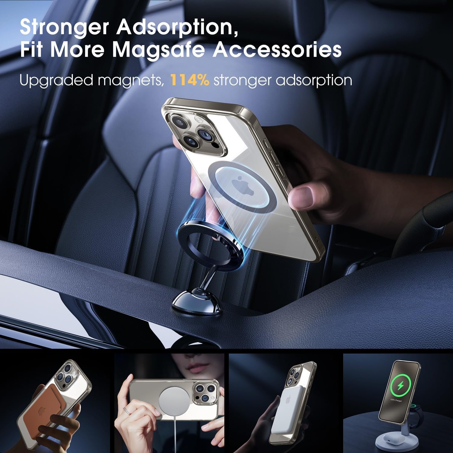 [Unparalleled Magnetic Power] Enhanced with an Alphex-specific magnetic ring and an array of 36 N52 triangle magnets, our case touts an impressive magnetic force of 2855.19gf. This exceptional strength ensures seamless compatible with various magnetic accessories, ranging from chargers to car mounts.