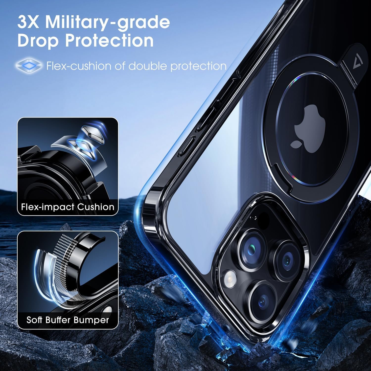 [3X Military Grade Protection] Our phone case is enduring over 4,500 12-feet drop tests with the phone intact. The double-cushioned structure, absorbs a whopping 98% of impact force during drops. Both the camera and screen are thoroughly protected.