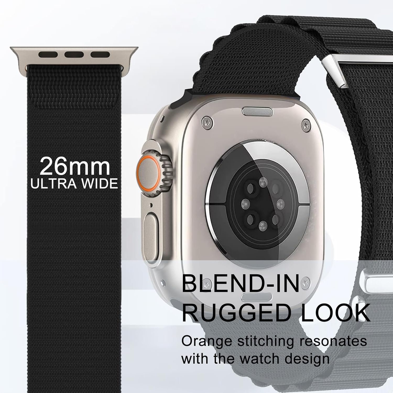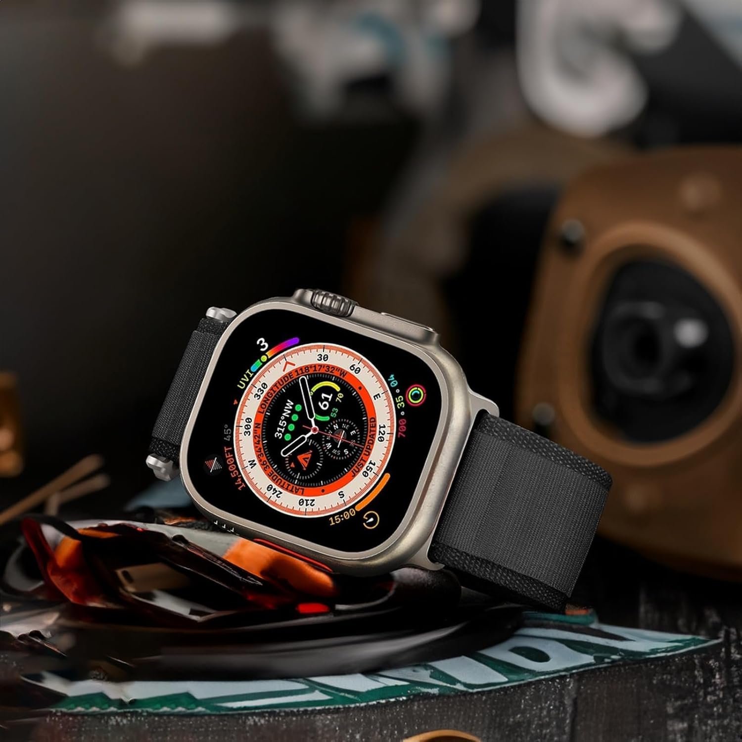3.The Rugged Alpine Loop Nylon iwatch ultra 2 Band is made from two textile layers woven together into one continuous piece without stitching.