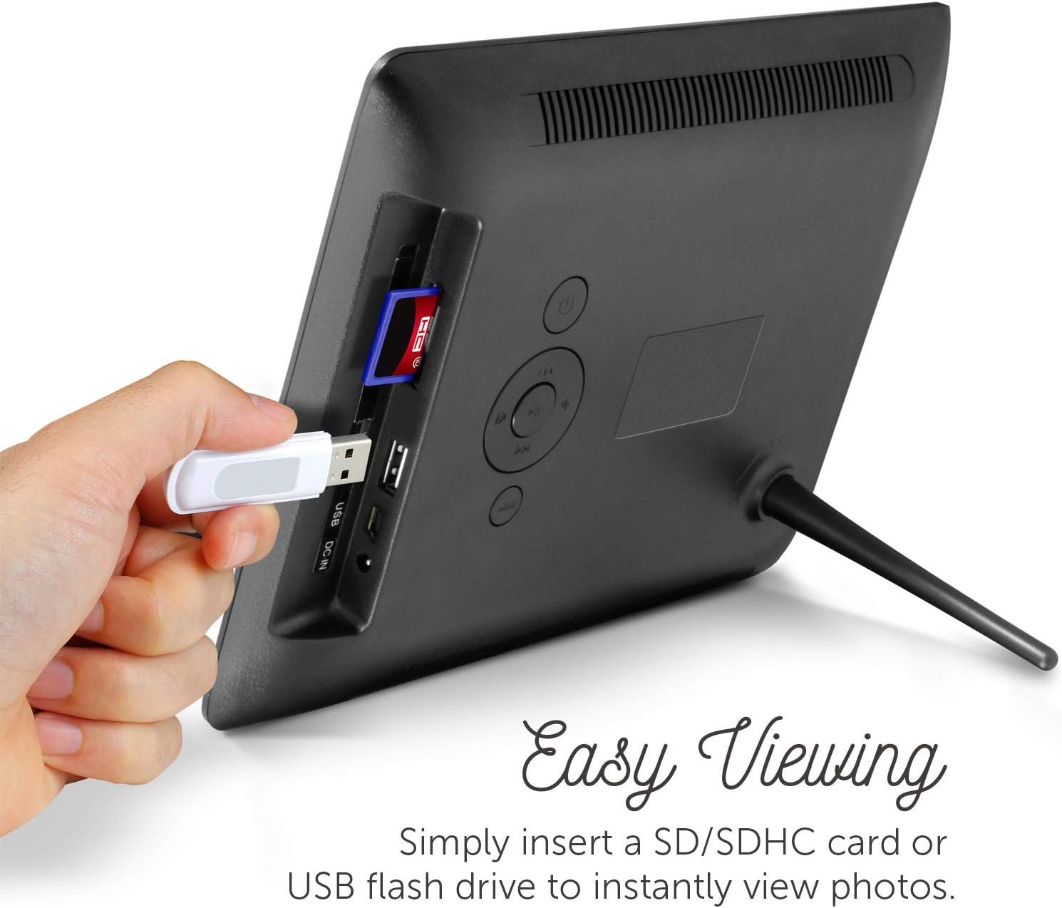 Built-in memory transfer and store files easily from your personal computer to the frame’s 4GB built-in memory or simply insert a SD/SDHC card (up to 32 GB) or USB flash drive to view your photos