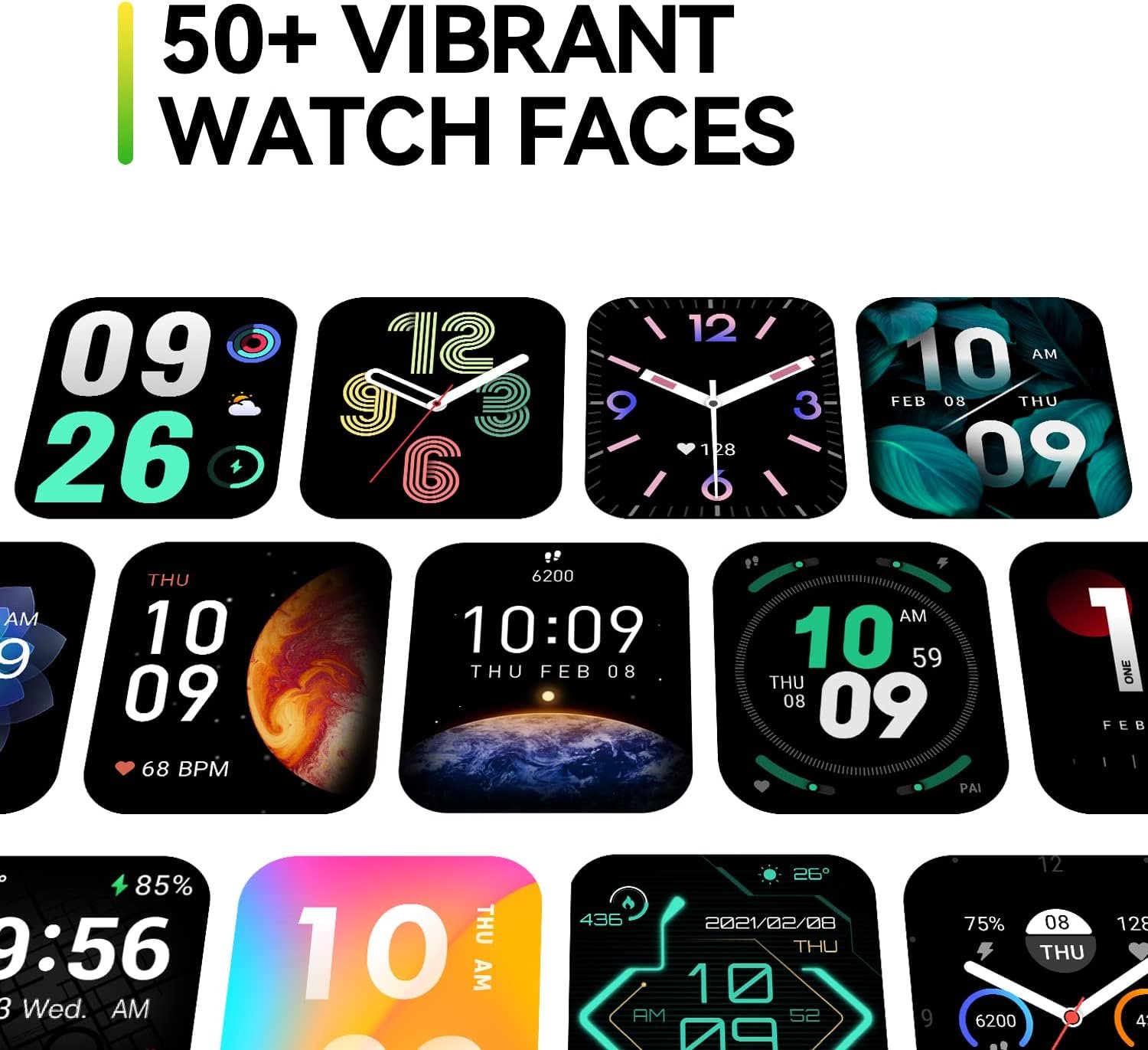 【Big on Screen, Big on Style】Immerse yourself in the 1.69″ supr-large and colorful HD display, and see all your incoming text and calls in awesome, expansive quality. Express more of yourself with 50 plus watch faces and editable watch faces & widgets – or customize with your own photos..Water resistance depth:50 meters.Suported Application:Blood Oxygen Measurement,Heart Rate Monitor,Multisport Tracker,GPS,Social Media. Connectivity technology:Bluetooth. Wireless comm standard:Bluetooth