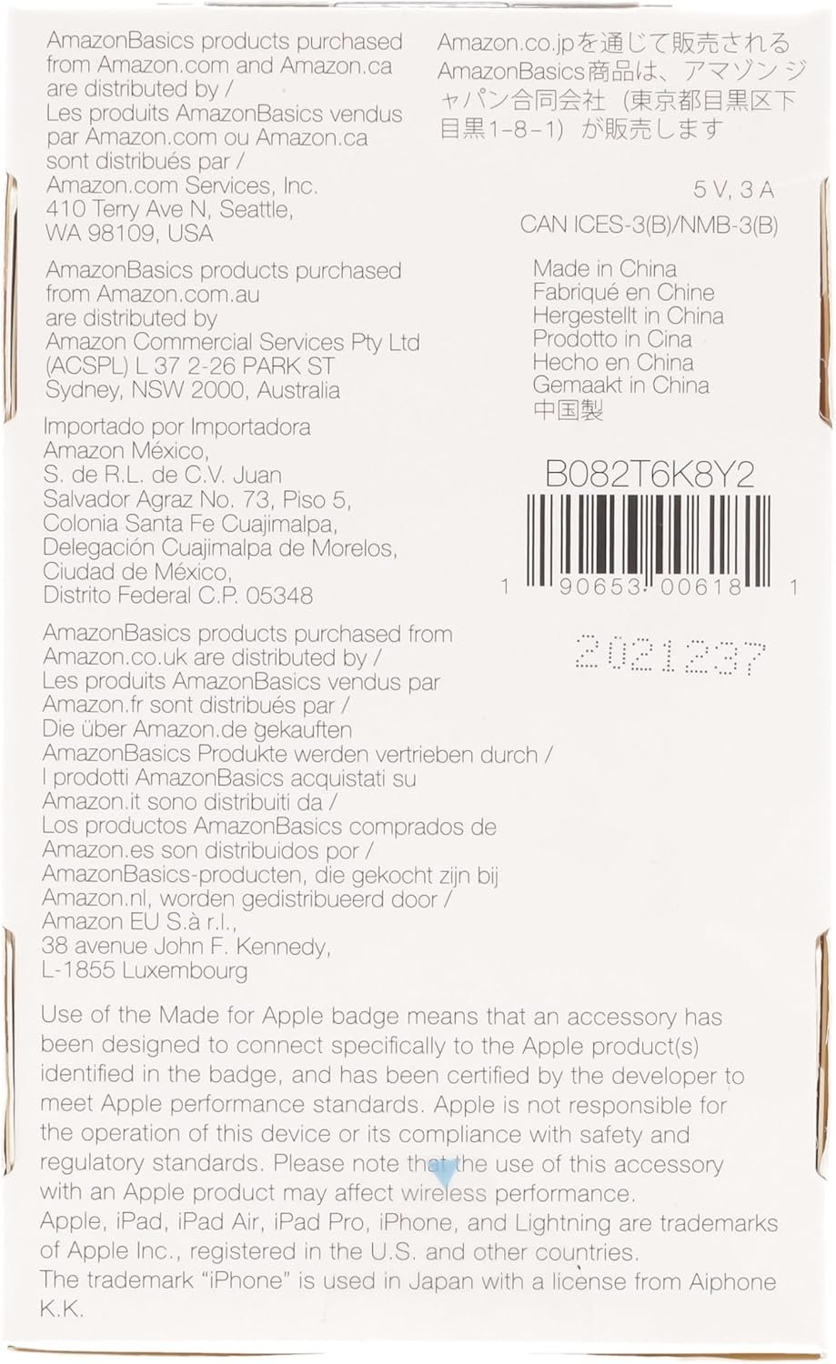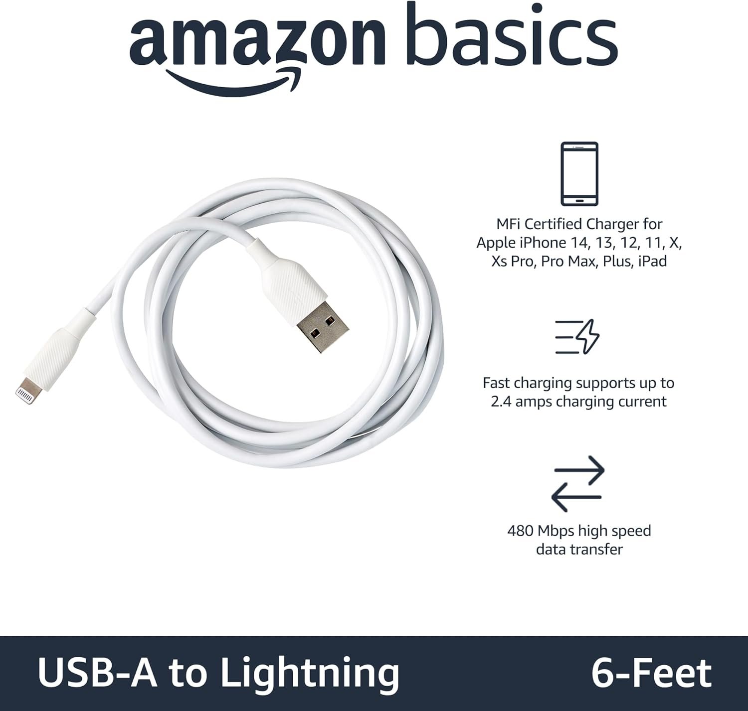 IN THE BOX: Amazon Basics Lightning to USB-A Cable for charging and syncing devices. Comes with Apple’s original C89 smart chip