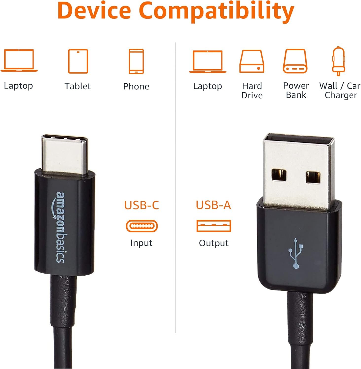 Amazon Basics USB Type-C to USB-A 2.0 Male Charger Cable, 6 Feet (1.8 Meters), Black