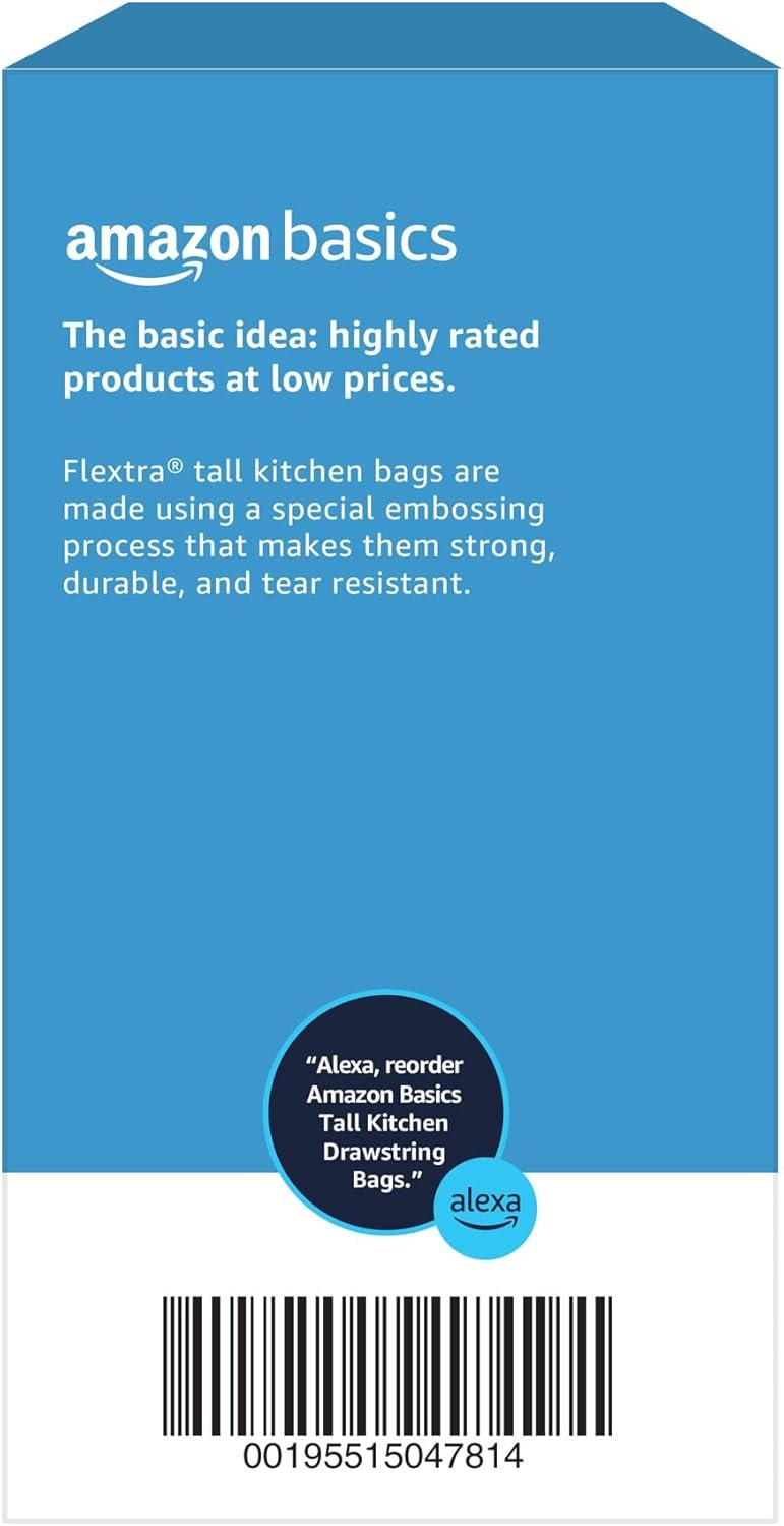 Be the first to review “Amazon Basics Flextra Tall Kitchen Drawstring Trash Bags, Clean Fresh Scent,10% Post Consumer Recycled Content, 13 Gallon, 90 Count, Pack of 1”