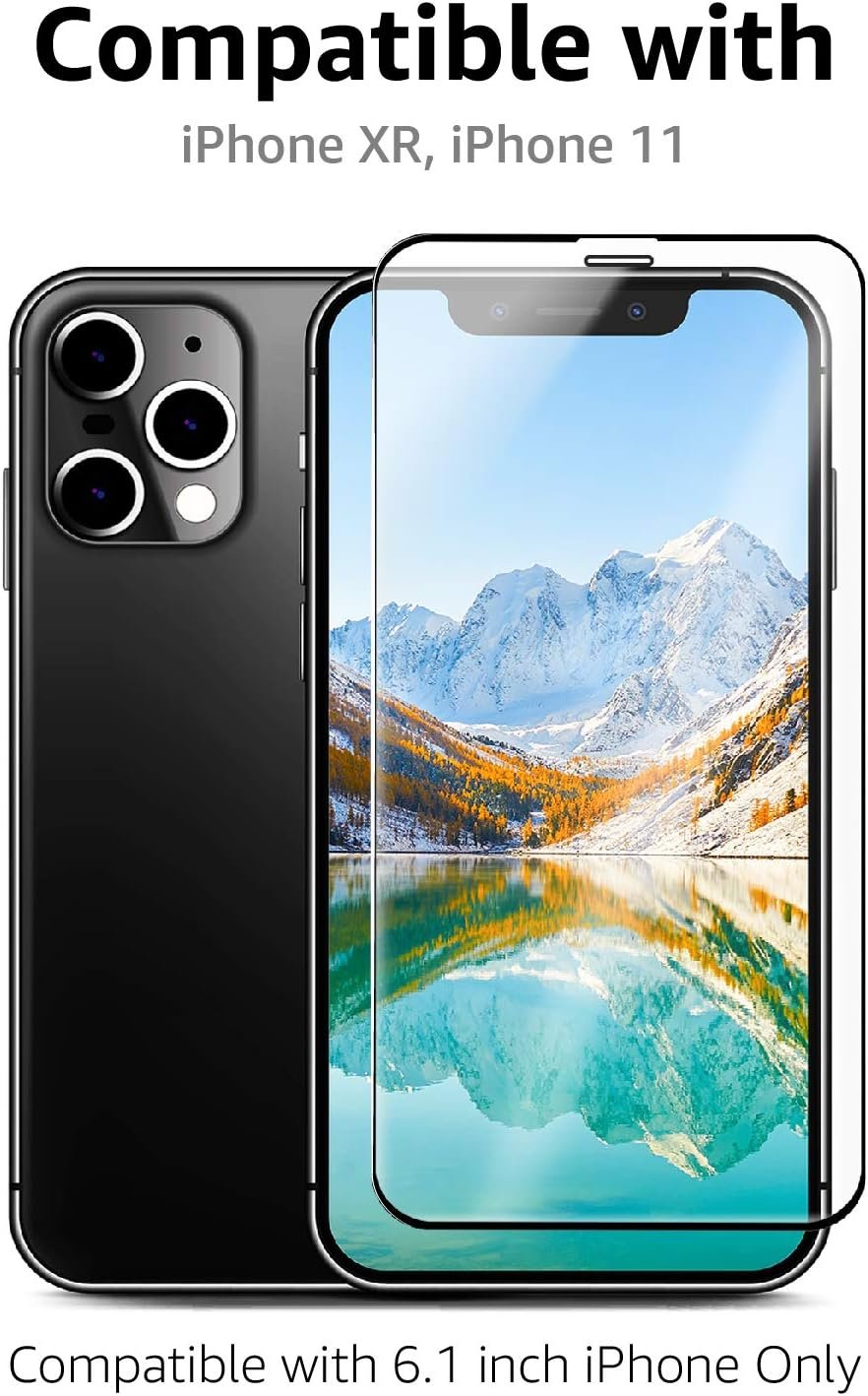 Amazon Basics Full-Coverage Tempered Glass Screen Protector for iPhone XR and iPhone 11 – 6.1 Inch, (5.63″ x 2.68″)(2pcs / pack)