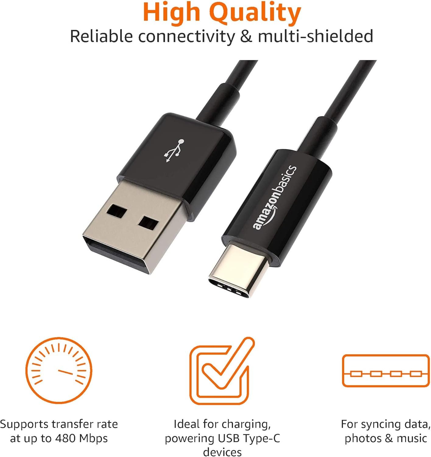 Amazon Basics USB Type-C to USB-A 2.0 Male Charger Cable, 3 Feet (0.9 Meters), Black
