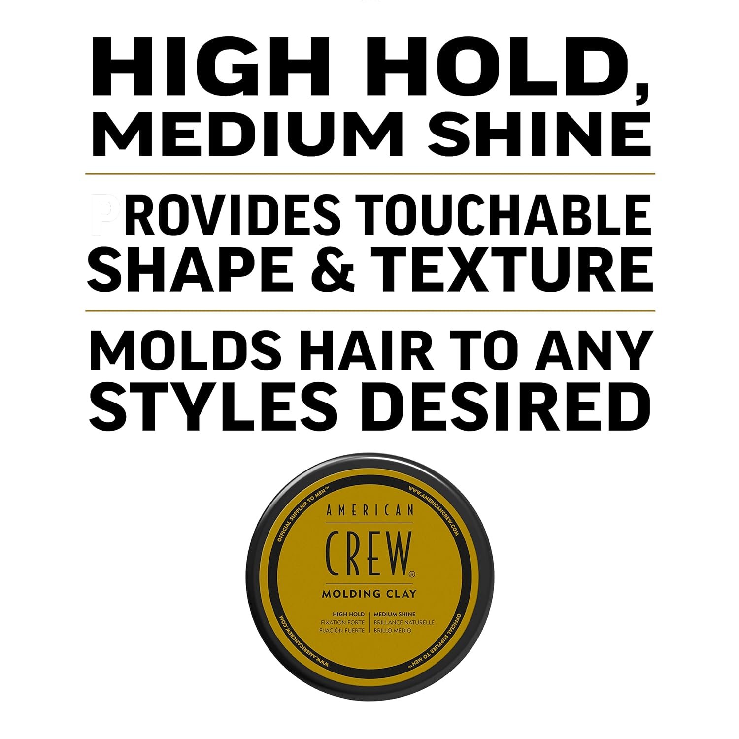 MOLDING CLAY: Molding Clay provides high hold with medium shine, which allows you to manipulate hair into any style