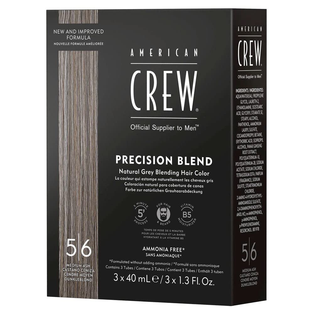 HAIR COLOR FOR GREY HAIR: American Crew Precision Blend natural gray hair coverage color comes in 4 different blends including Light, Dark, Medium Ash and Medium Natural