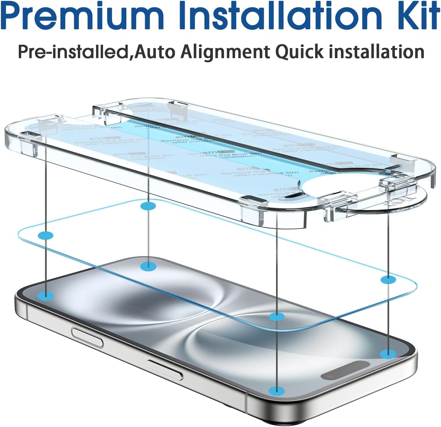 【Ultra-Fast Installation, Auto-Alignment in 30 seconds!】 Installing a screen protector might seem like a headache, but our OneTouch iPhone 16 screen protector is equipped with an automatic alignment kit for a fast installation in just 30 seconds! Say goodbye to the hassle of manual alignment.