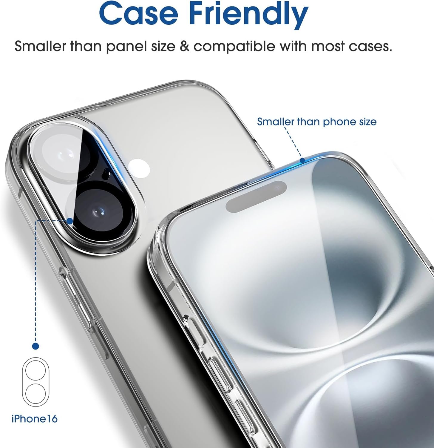 【Screen Protector Compatible with iPhone 16 6.1″】 Specially designed ONLY for iPhone 16 6.1″. Not compatible with any other iPhone models.