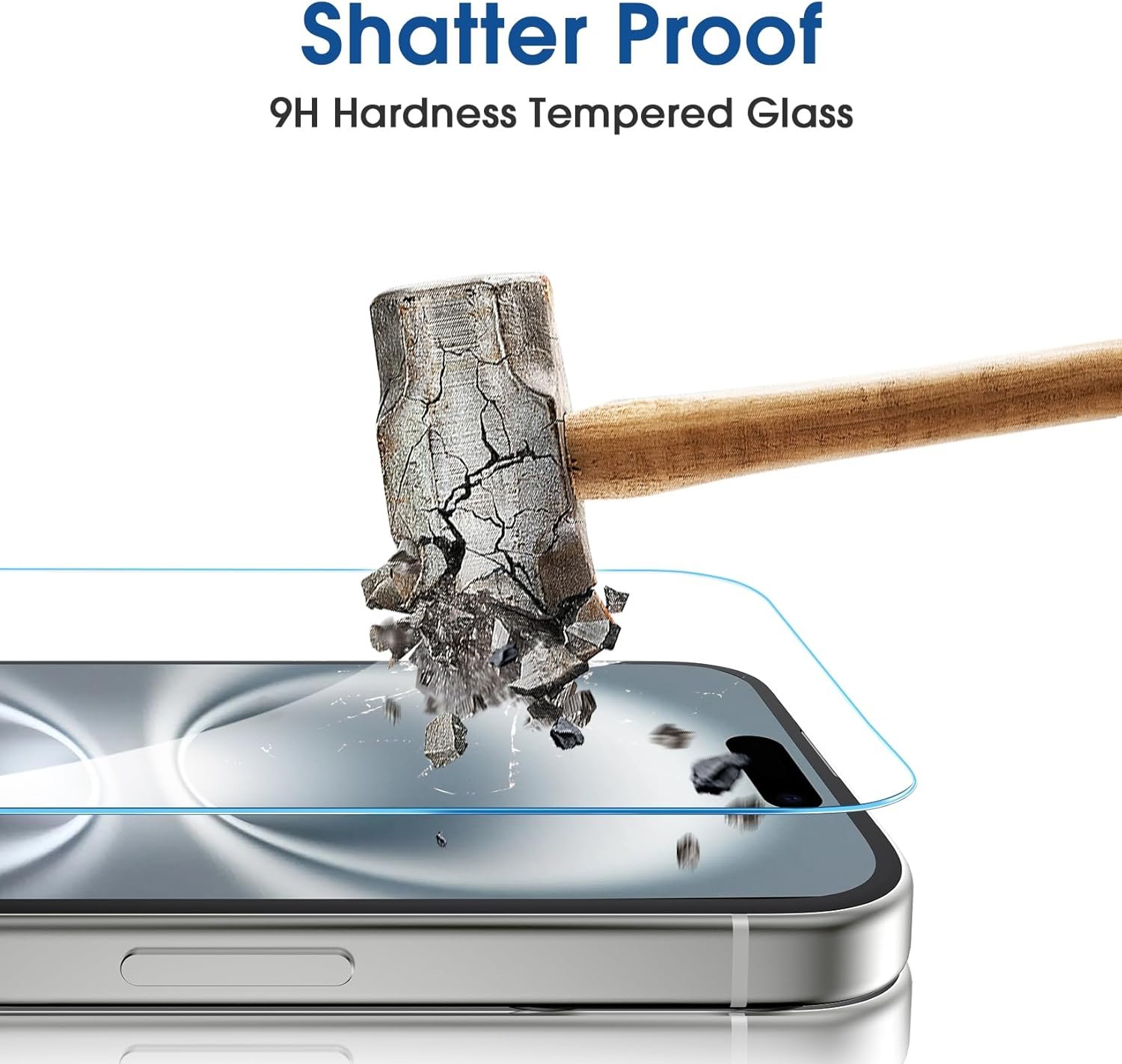 【Indestructible Ultra 9H Glass for Ultimate Protection】Our iPhone 16 tempered glass screen protector leads the market with Ultra-high 9H hardness for maximum resistance against impacts and scratches from objects. No matter you’re daily routine, your phone is safely protected. Give your device that extra layer of sturdy protection it deserves!