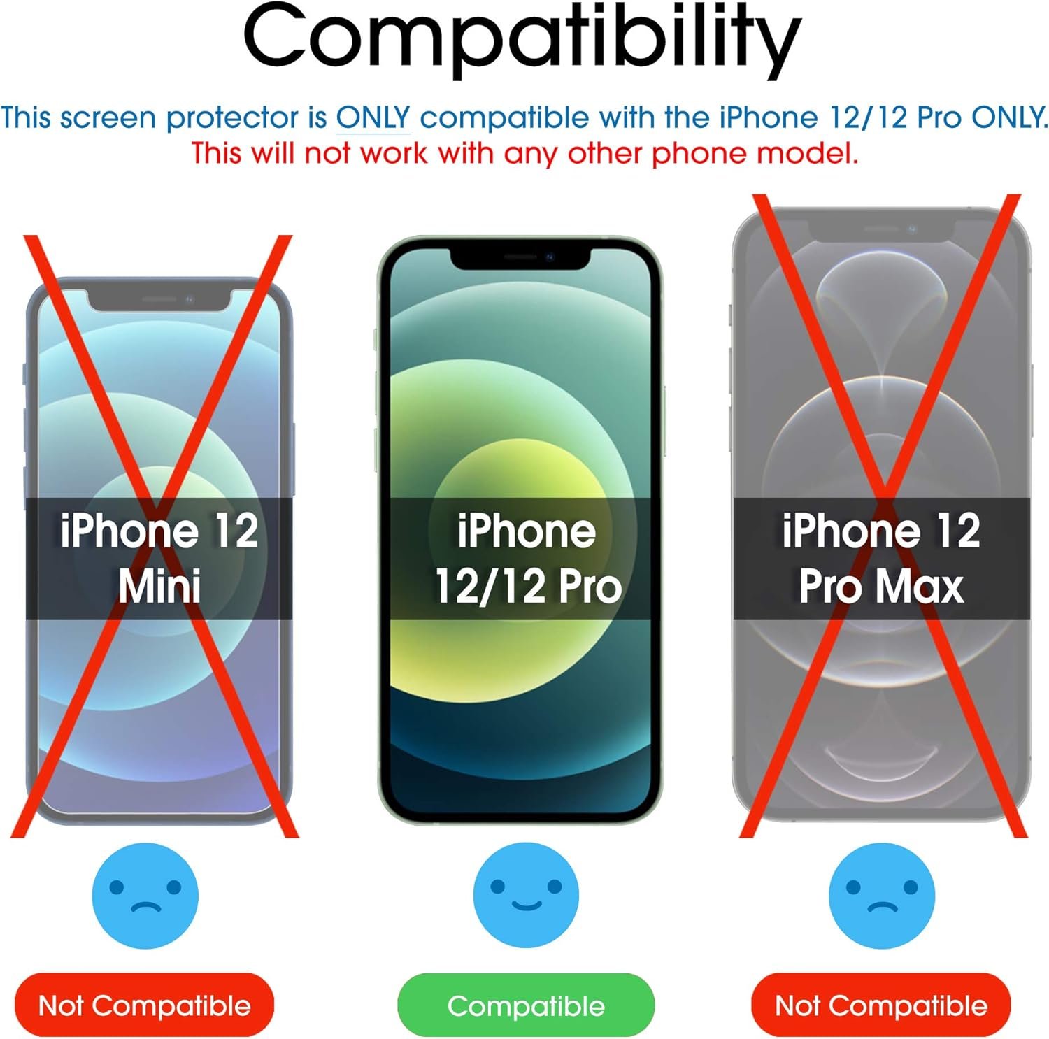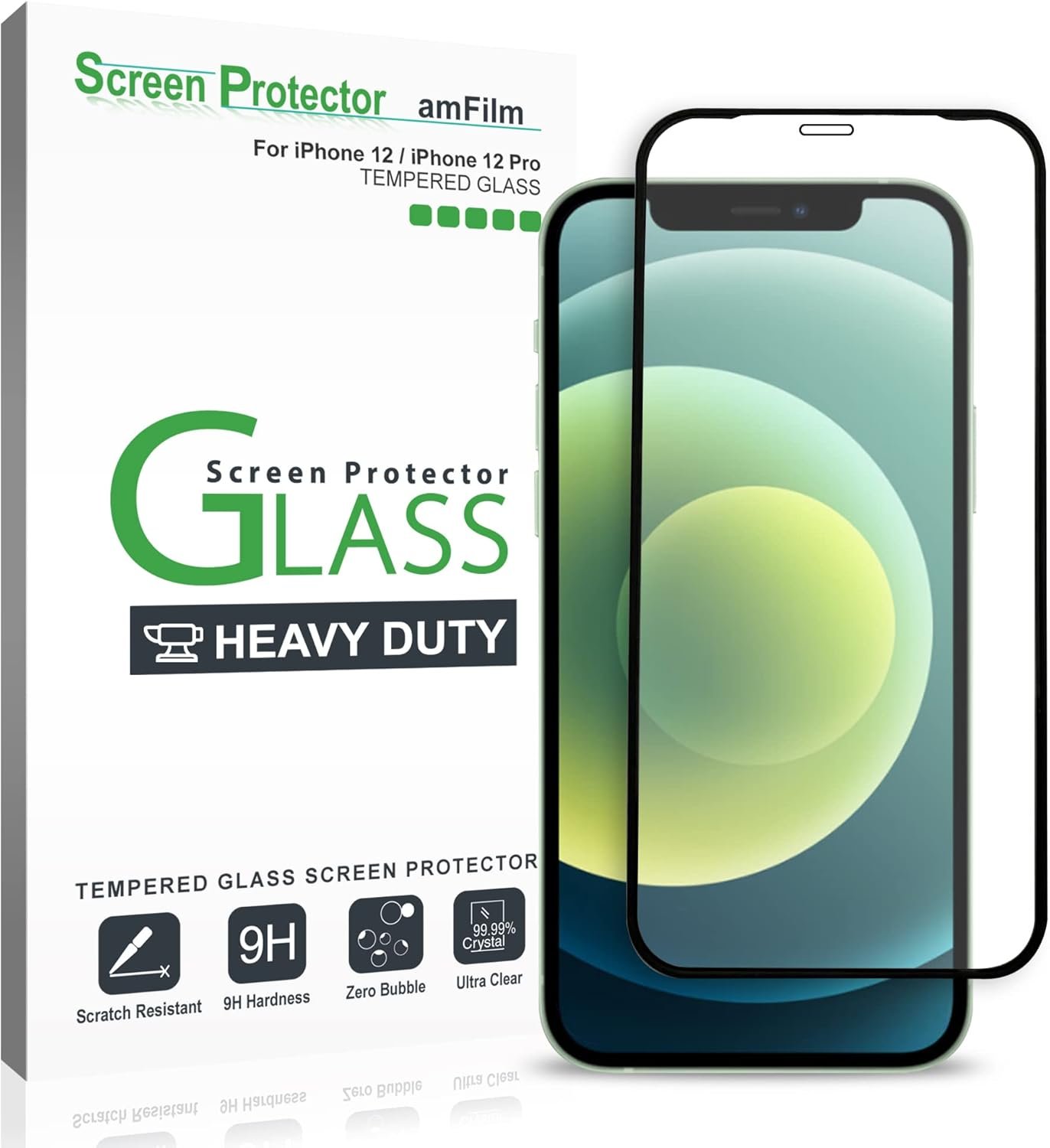 amFilm Heavy Duty Screen Protector Glass for iPhone 12/12 Pro (2020, 6.1″ Display) Tough Glass – Padded Edges to Cushion/Absorb Impact