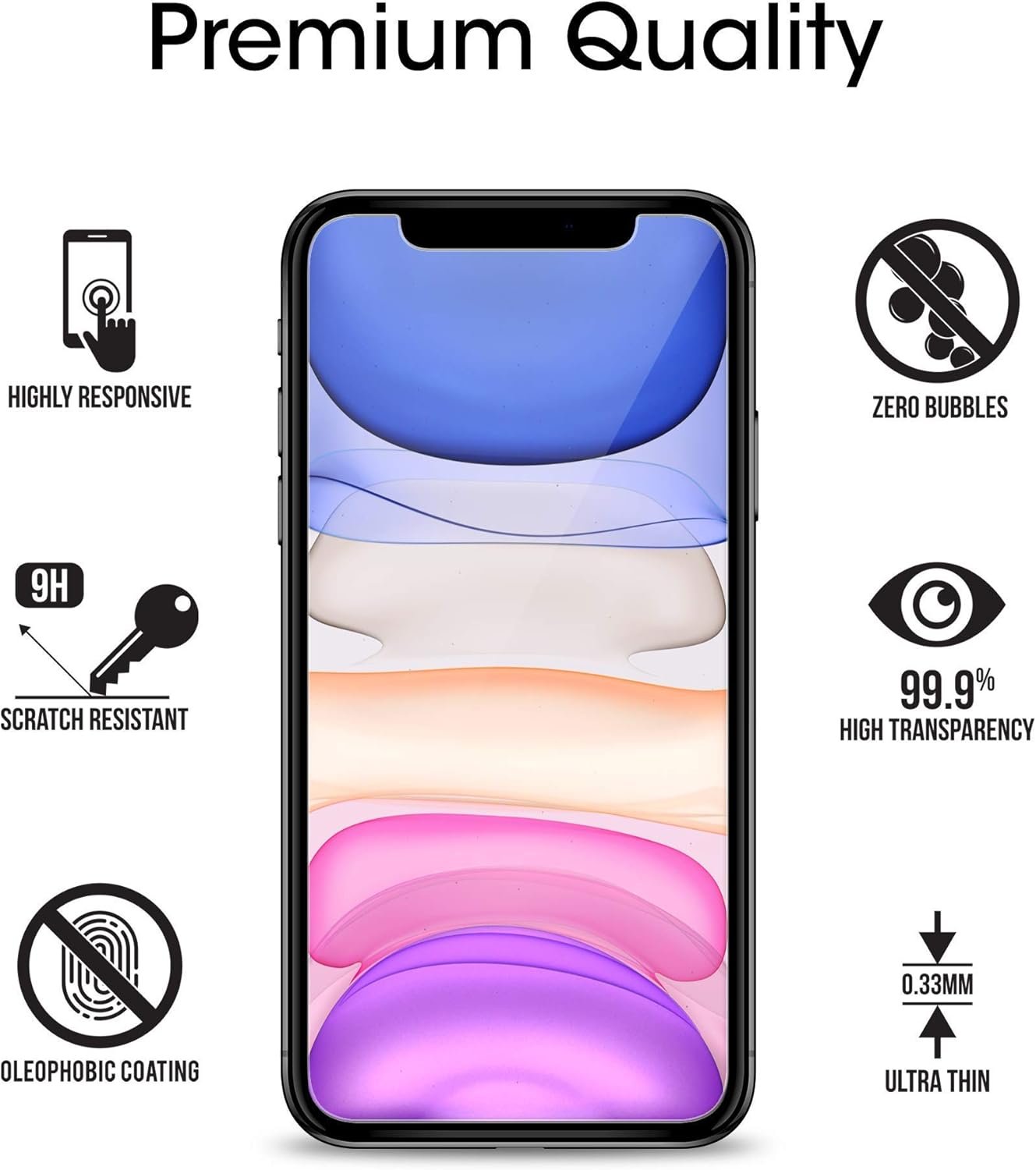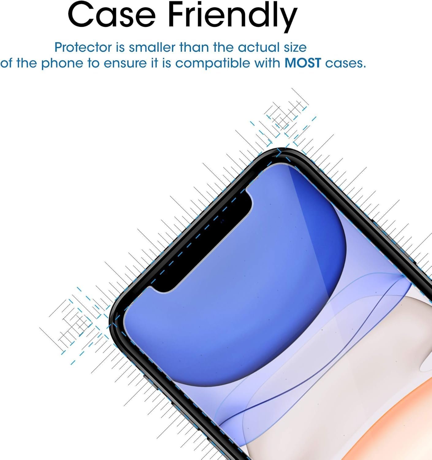 This screen protector is specifically cut to fit the iPhone 11 / XR (6.1″ models) to cover the display area, allowing room for most cases.