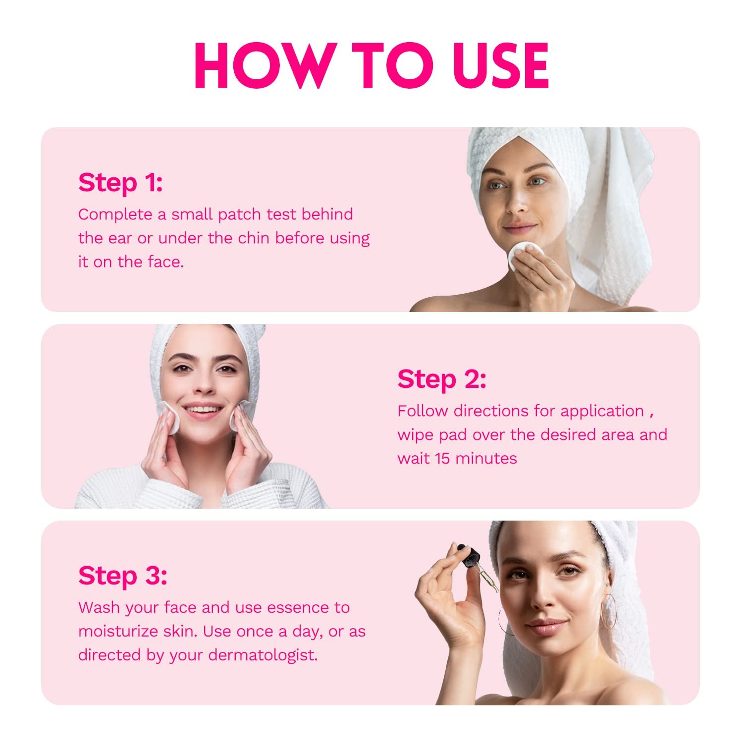 NON-WOVEN TEXTURED RESURFACING PADS– Each jar comes with 80 non-woven textured resurfacing pads and 1 tweezer for easy application. Step 1: Complete a small patch test behind the ear or under the chin before using it on the face. Step 2: Carefully follow directions for application and discontinue use immediately if any redness or irritation occurs. Step 3. wipe pad over the desired area and wait 15 minutes and then rinse your face.