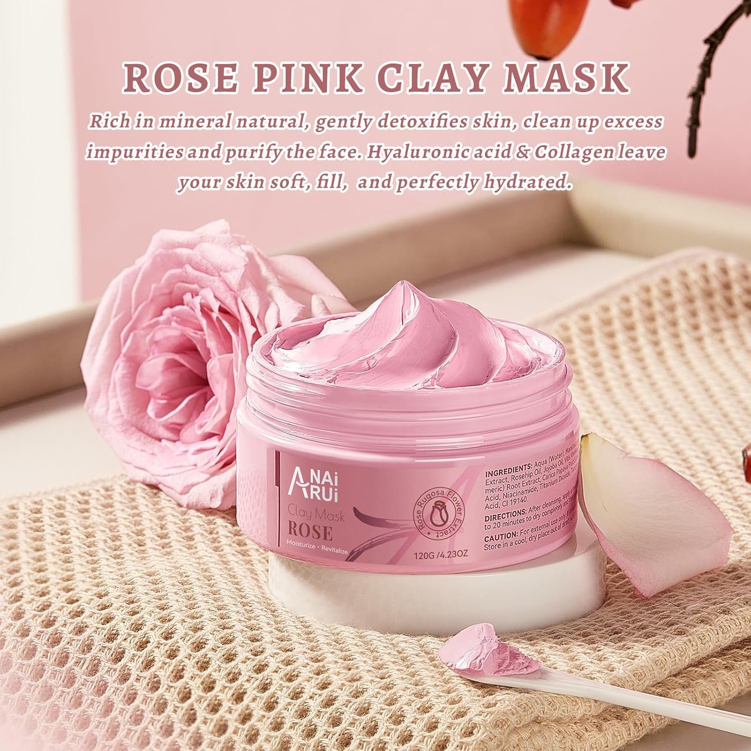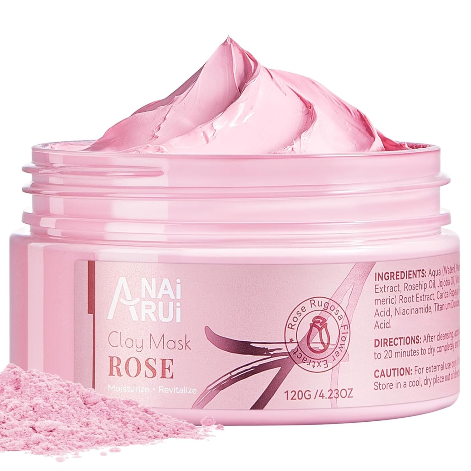 ROSA CLAY PINK MASK – ANAiRUi Rose pink facial clay mask includes rosa flower extracts and anti-aging ingredients, revitalize & moisturize your skin with rose texture face mask, gently cleans the toxins, also rejuvenates your complexion for a smoother, cleaner and refreshed skin.