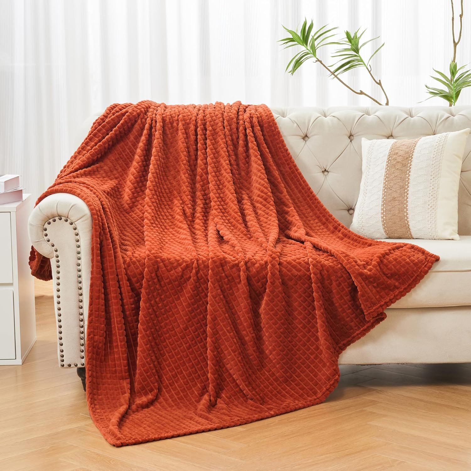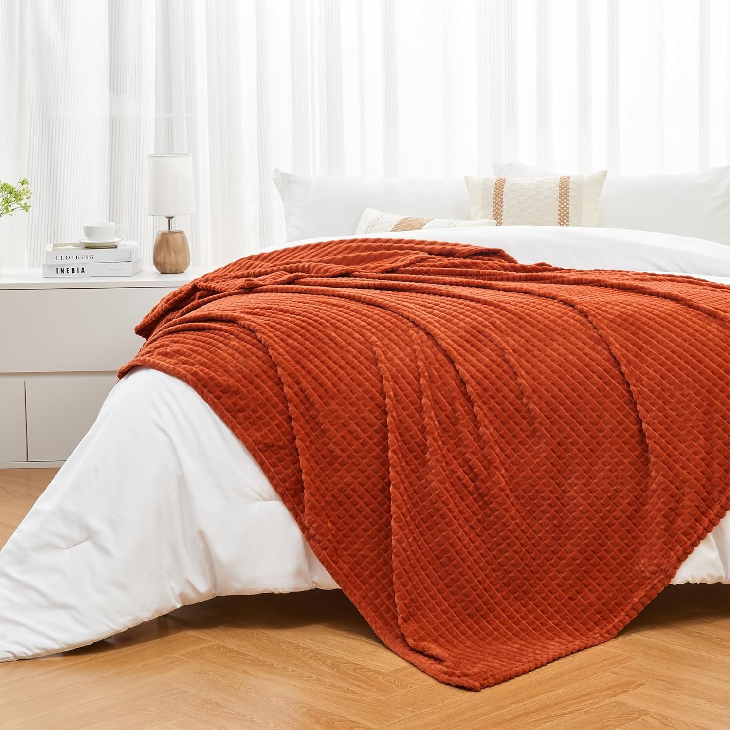 Unique Style: Carefully designed, the flannel blanket features a popular and modern jacquard square grid design, making this blanket a great decorative element and add an stylish touch to your home.