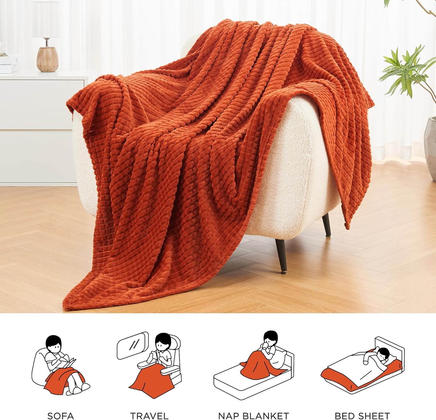 Made of premium microfiber, this blanket has a soft, velvety feel for excellent comfort and warmth, you can indulge in the utmost softness of our flannel fleece blanket.